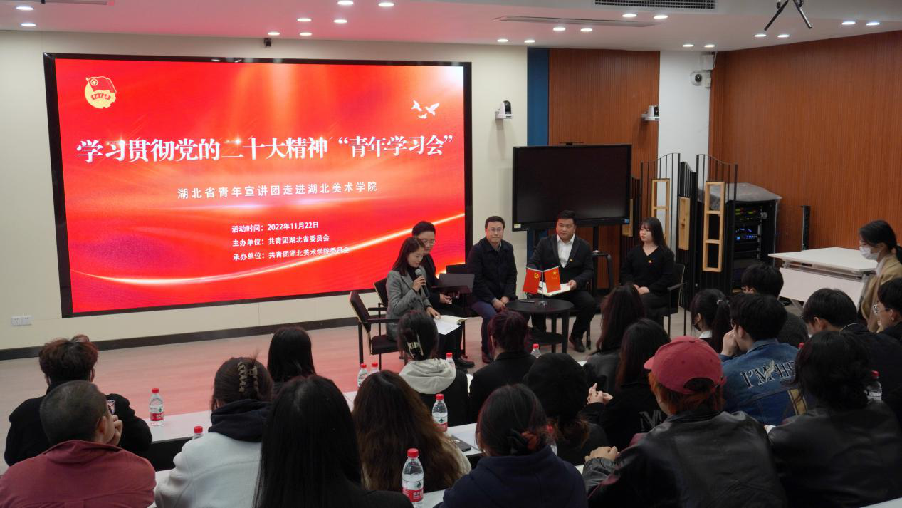 11月22日上午,湖北省青年宣讲团来校举办党的二十大精神“青年学习会”集中宣讲活动。此次活动由共青团湖北省委员会组织安排,校团委、党委学生工作部组织实施。本次学习分为“集中宣讲”和“青年面对面”两个专项活动,设立A12-115线下主会场和各学院视频线上分会场10个。宣讲团成员、武汉科技大学马克思主义学院副院长刘文波教授以《以中国式现代化全面推进中华民族伟大复兴》为题作宣讲主题报告,我校2名师生典型分别做个人成长经验分享。党委学生工作部、团委主要负责人,各学院分团委书记,各学院青年学生代表共计230余人参与了此次学习。