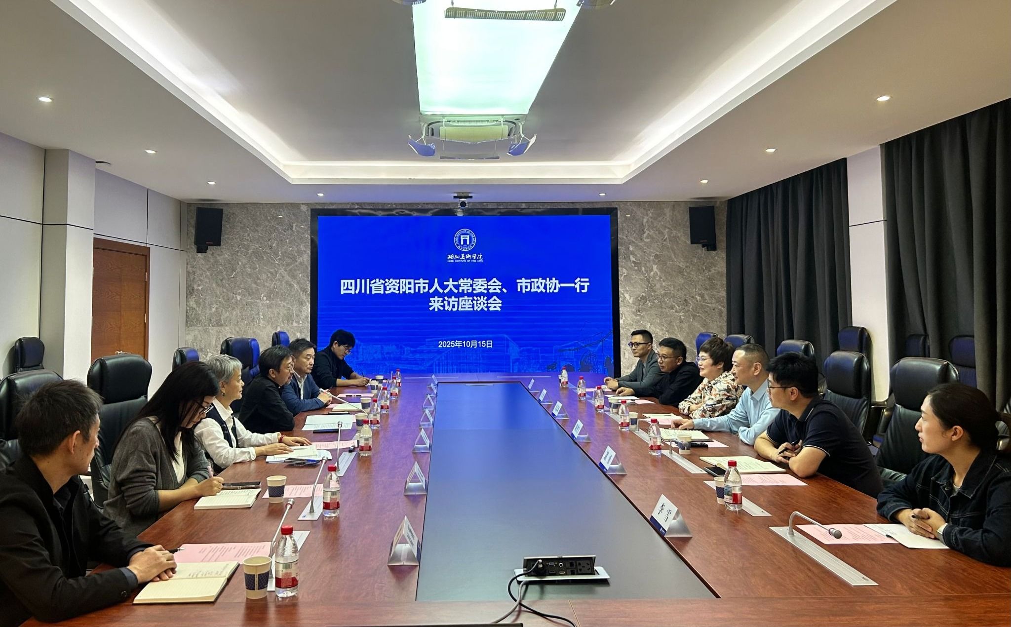 10月15日上午,资阳市人大常委会党组副书记、副主任万志琼、市政协副主席骆登宇一行6人到访我校,双方在我校藏龙岛校区行政楼202会议室召开调研座谈会,我校副校长张炼,研究生处处长尹传垠,教务处处长肖莉等参与座谈。