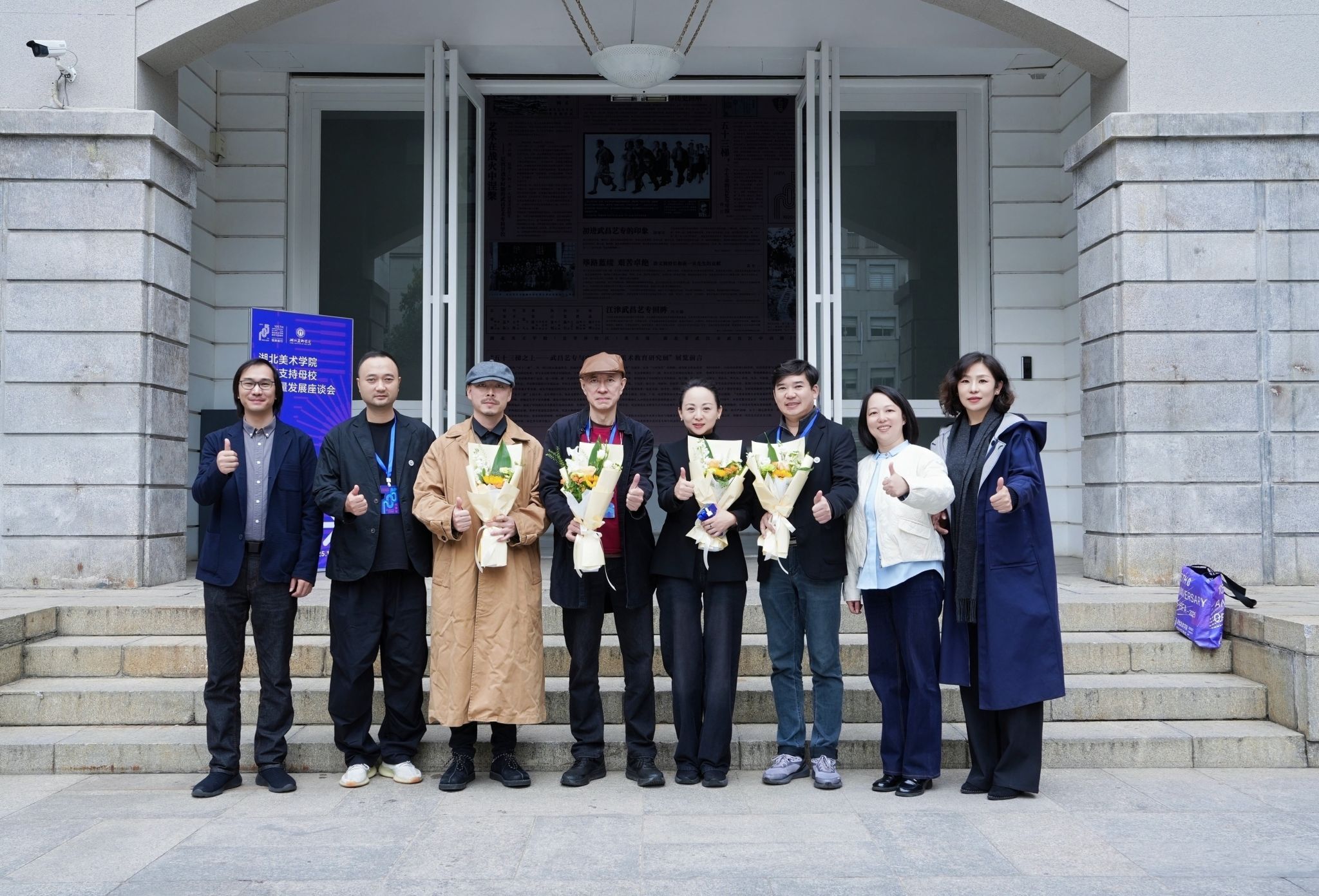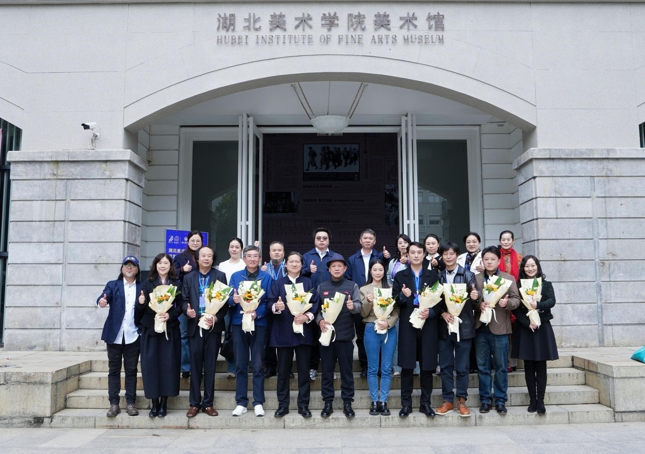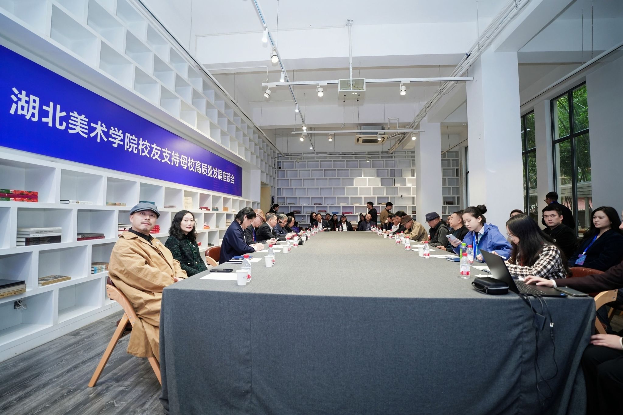 在齐声合唱湖北美术学院校歌后,与会校友共同观看“五十三之梯之上”展览并合影留念。当天下午,校友代表出席校友支持母校高质量发展座谈会,围绕母校“十五五”改革发展、学科专业建设、人才建设、校企合作、国际交流等方面进行了座谈交流。