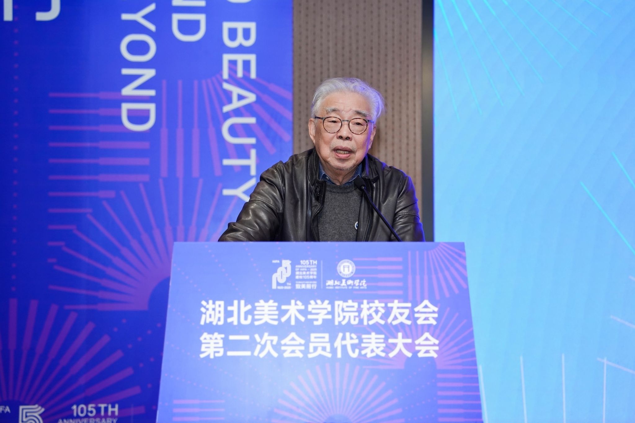 唐小禾深情回顾了与母校长达68载的深厚情缘,并从“学脉相承”“血脉相融”“文脉相传”三个层面系统追溯了湖北美术学院自武昌艺专创校至今的百年办学历程,生动讲述了学校栉风沐雨、百折不挠、矢志美育的办学传统,致敬礼赞了几代湖美人接力奋进、薪火相传、开拓创新的历史功绩。他对学校现任领导班子带领全校上下在申博攻坚和高质量发展中的坚定决心和艰苦努力表示肯定,并深切期待湖北美术学院取得新的改革成就,迎来新的发展高潮。同时,他希望校友会第二届理事会进一步发挥桥梁纽带作用,推动校友工作实现新的跨越。