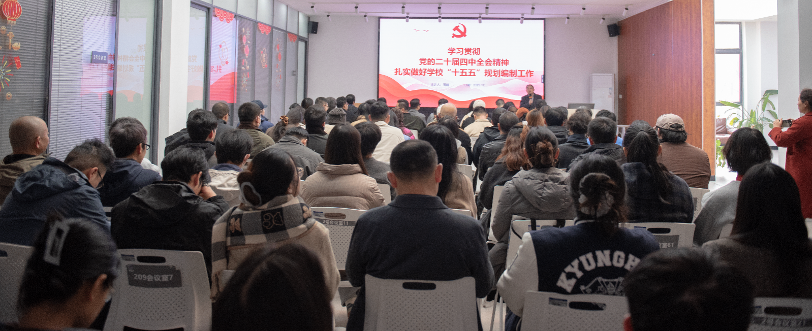 周峰强调,学习贯彻党的二十届四中全会精神是当前重要政治任务。他要求与会人员自觉将全会精神融入工作实际,把思想和行动统一到党中央决策部署与学校发展蓝图中来,号召全体师生以主人翁姿态积极投身“十五五”建设,在各自岗位上担当实干、开拓创新,共同谱写学校高质量发展新篇章。