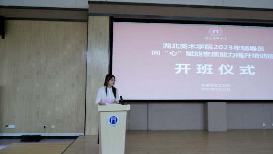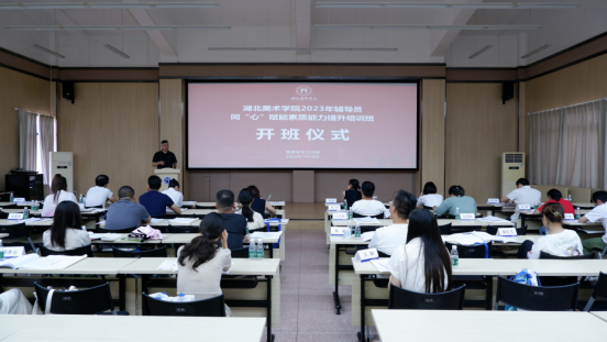 会上,党委学生工作部副部长李孟丹解读了《湖北美术学院2023年辅导员同“心”赋能素质能力提升培训方案》,并对本次培训基本情况做简要介绍。本次培训紧扣学生工作实际需要,涵盖政治能力提升和职业能力提升两大模块,培训形式包括主题报告、专题学习、业务交流、现场教学、沙龙研讨等,旨在引导辅导员坚定理想信念,提升素质能力和育人水平。