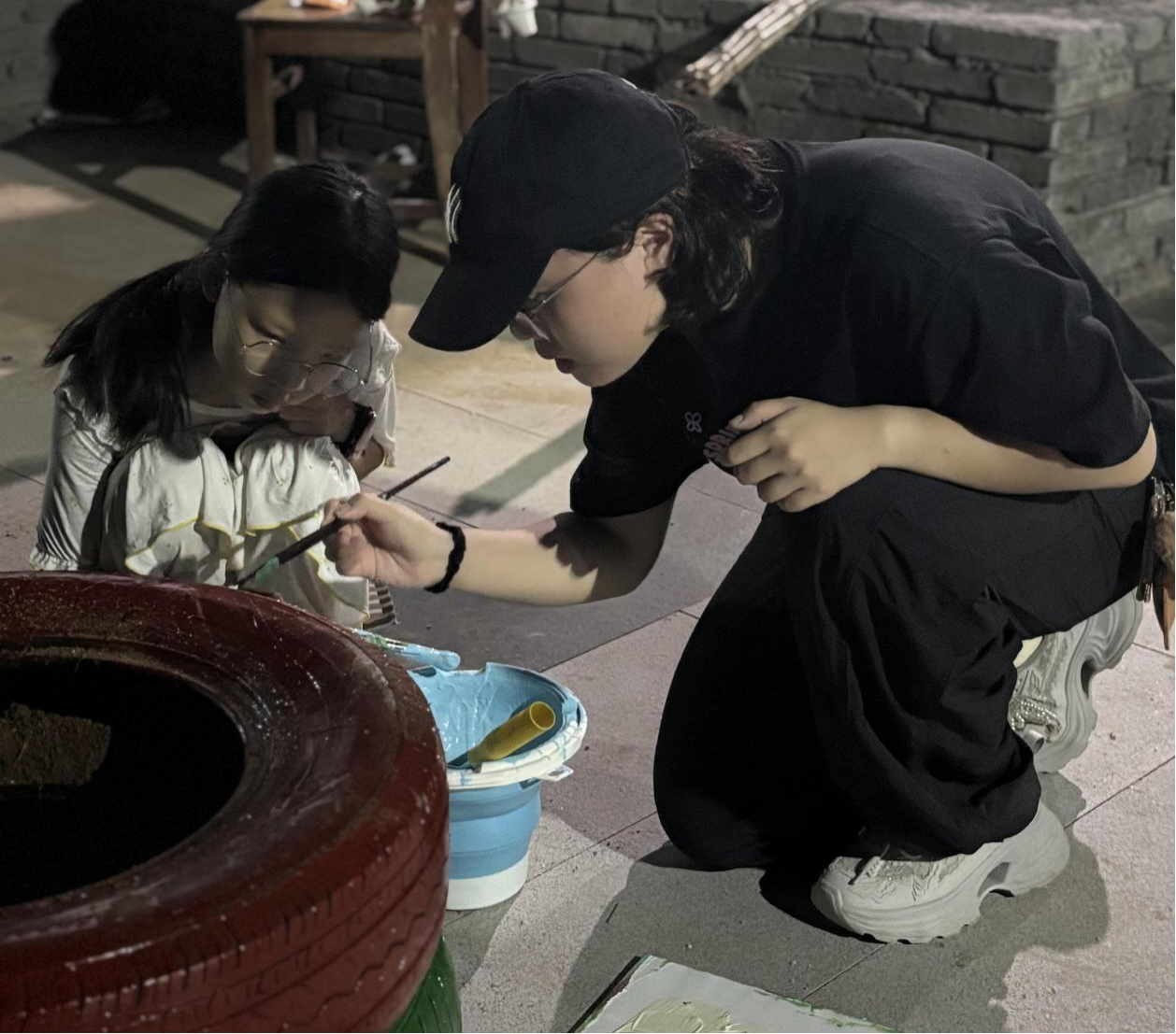 此次实践的深层价值,在于突破“艺术装饰”的表层意义,构建起高校与乡村的情感纽带。创作期间,研究生们将色彩理论、构图技巧等专业知识融入互动过程,村民则传授着“瓦罐选厚壁才耐用”的生活智慧,形成专业知识与地方经验的双向滋养。而研究生们则在实践中深化了对社会美育的认知,“以前觉得美育是课堂教学,现在才懂,真正的美育要扎根生活,让艺术成为村民能触摸、能参与的存在”。