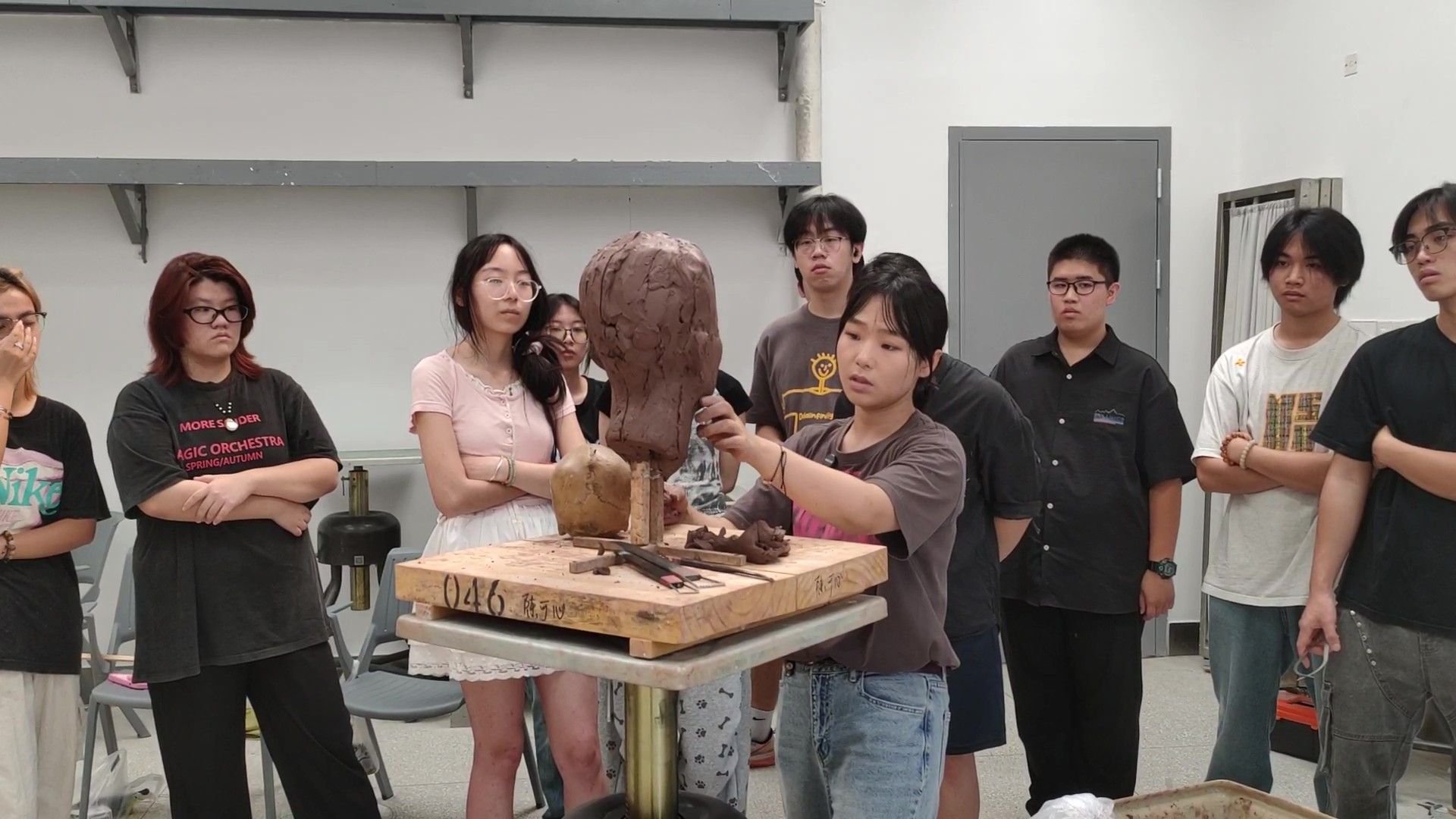 此外,黄黎彦结合自身创作经验,分享多角度观察法在捕捉模特形象特征中的应用,指导学生通过对比、测量提升观察全面性,精准呈现人物神态与个性。作为本科毕业于雕塑与公共艺术学院、现留俄深造的学子,她还以自身学术经历激励学弟学妹,鼓励其在专业领域勇于探索、坚持创作。