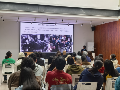 讲座以“学术论文选题的策略及文献挖掘——基于20世纪中国美术的思考”为主题,围绕论文写作的基本思路,从“提出问题”入手,以陈烟桥、李铁夫、天马会、北方艺术群体四个案例进行分析,展示如何通过年谱梳理、作品分析、交游考证等方式,揭示被遮蔽的历史细节与研究潜力。并通过对图像的比较进而挖掘图像背后的文化意涵与时代精神。讲座过程中,张园细致严谨的研究态度使得在场师生收益匪浅。