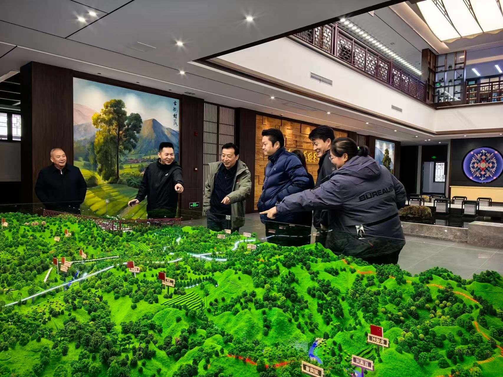 参观乡村振兴主题画作