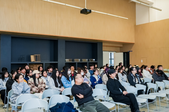 结合项目实践经验,黄建成分享了“艺术直觉”在设计创新中的重要作用。他指出,在技术高度发展的时代,最难被取代的始终是人类特有的审美敏感度与创造性判断,这也是培养学生最核心的价值所在。艺术实验不仅是设计灵感的源泉,更是构建独立思维、生成原创性的关键路径。因此,他鼓励同学们在设计学习中保持开放的知识结构、跨领域的观察能力与持续的艺术探索,以形成具有时代敏锐度的设计语言。他还结合自身在公共艺术、文化展陈及空间策划中的经验,展示了如何通过概念建构、视觉系统与叙事表达,将设计从“物的呈现”转向“意义与体验的组织”。他指出,未来的设计师需要在“艺术—设计—技术”的交汇处建立复合能力,这也呼应了环境艺术学院在学科建设中所强调的跨界与综合化方向。