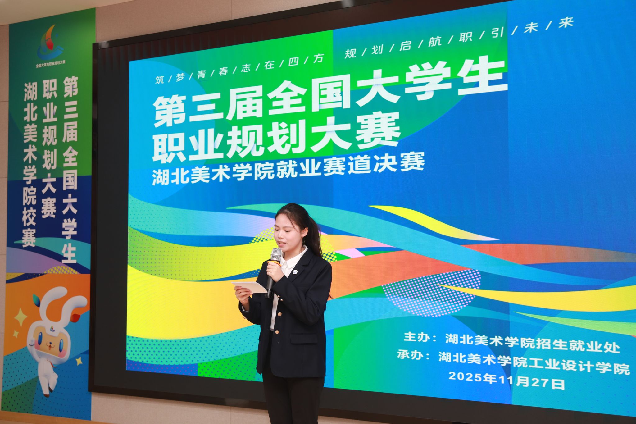 为加强学生生涯教育与就业指导,深化“以赛促学、以赛促教、以赛促就”的育人理念,11月27日,我校在藏龙岛校区A12-115成功举办“筑梦青春志在四方,规划启航职引未来”第三届全国大学生职业规划大赛湖北美术学院校赛决赛。大赛设置成长与就业两个赛道,共吸引2700余名学生踊跃参与,参赛比例达35%,覆盖多个学科领域,参赛规模创历史新高。