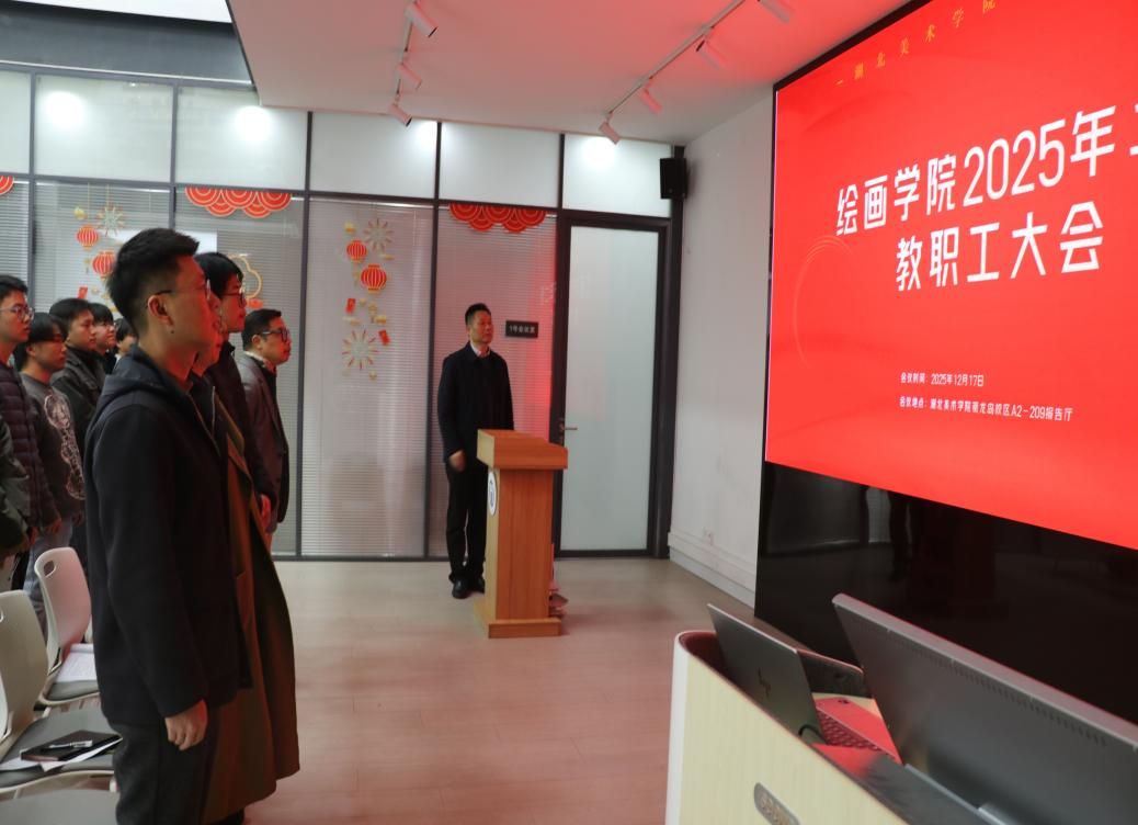 2025年12月17日下午,绘画学院在A2-209报告厅召开2025年教职工大会。绘画学院领导班子及全体教职工参加会议。会议由绘画学院党委书记夏新兵主持。