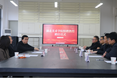 2025年12月18日上午,特聘教授梁宇聘任仪式在绘画学院A4-204会议室举行。中国文联全委会委员、中国美术家协会理事,中国美术家协会水彩画艺委会副主任兼秘书长梁宇教授出席聘任仪式。湖北美术学院党委副书记、校长周峰,人事处处长李慧,绘画学院领导班子及师生代表参加聘任仪式。仪式由绘画学院院长徐文涛主持。