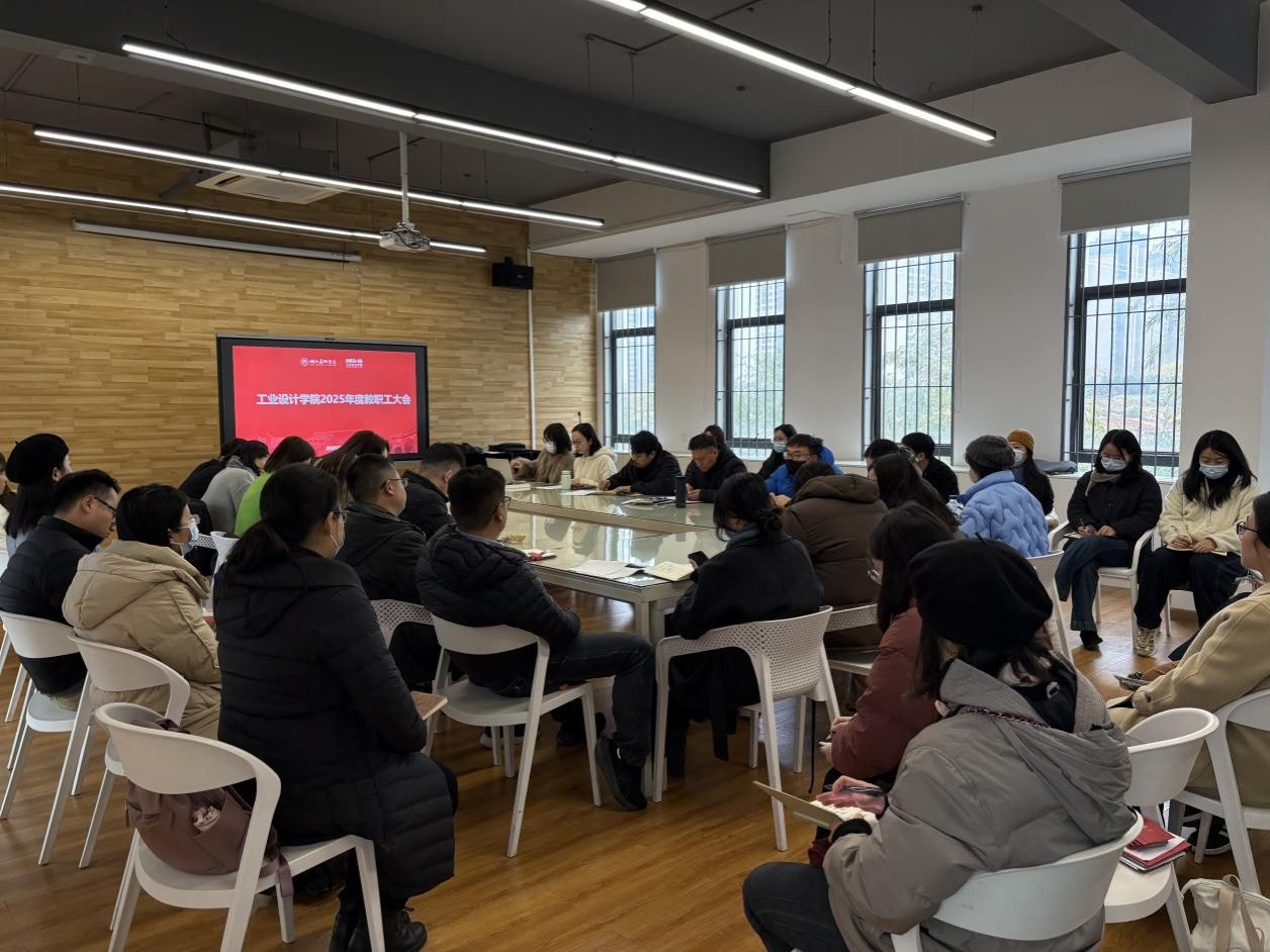 12月23日下午,工业设计学院在藏龙岛校区A6-212会议室召开2025年度教职工大会。学院全体教职工齐聚一堂,共商学院发展大计。会议由工业设计学院党委副书记、分工会主席赖慧蓉主持。