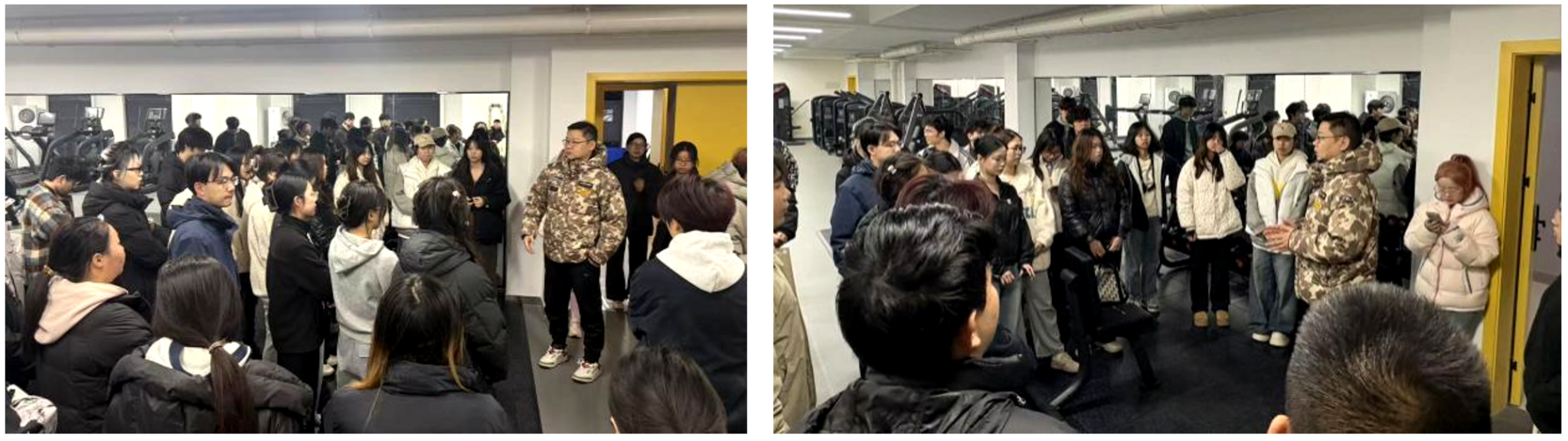 为深入贯彻全民健身国家战略,丰富校园文化生活,提升师生健康水平,在学校相关职能部门的大力支持下,由公共课部负责筹建的湖北美术学院“艺动体育空间”已顺利竣工,包括健身房、形体房和乒乓球室三个功能区域,位于藏龙岛校区十八栋学生宿舍一楼。为了保障师生运动安全、帮助大家规范使用健身设施,公共课部体育教研室于2025年12月29日晚17:30在湖北美术学院藏龙岛校区十八栋学生宿舍一楼“艺动体育空间”健身房成功组织了第二次健身器械使用安全与操作规范培训,并安排学生试用所有器械。体育教研室主任全远刚带领王鑫、周锐两位教师及健身器材厂家技术负责人均到达现场,为积极报名参加的30余名学生代表进行了细致的讲解与培训。