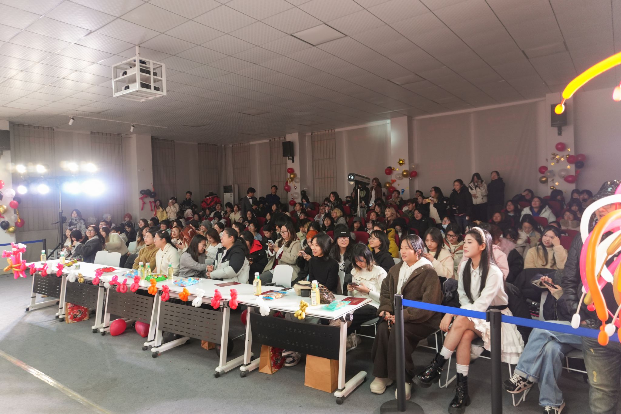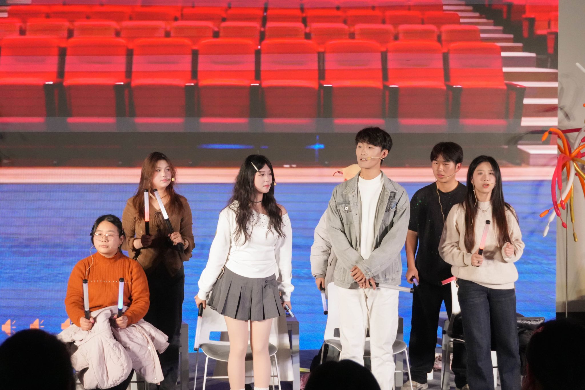 舞蹈节目同样精彩不断,各具风采。Tempo舞蹈社接连演绎的《Ditto》《Famous》《history》风格迥异,舞姿灵动飘逸,展现出扎实的舞蹈功底;动漫社宅舞部的《一键三连》元气满满,可爱俏皮,尽显青春活力。小品节目则承包了全场欢笑,心雨话剧社带来的《再见老张》《安可》情节生动有趣,演员们表演细腻自然,将故事演绎得淋漓尽致,引发全场阵阵欢笑。晚会期间穿插的多轮抽奖环节,更是将现场氛围推向一个又一个高潮,互动热烈,惊喜不断,让暖意与喜悦在师生间传递。