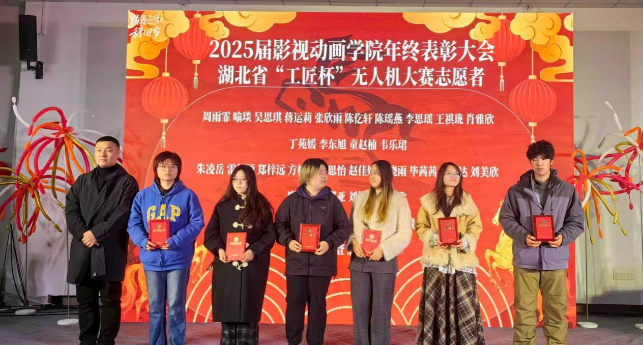 节目开始前,大会集中表彰了运动会志愿者、湖北省“工匠杯”无人机大赛志愿者、中国美术家协会动漫艺委会志愿者以及2025年“最美寝室”,以此肯定同学们过去一年的积极贡献与优异表现。