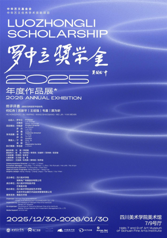 2025年12月30日,2025“罗中立奖学金”年度作品展暨开幕仪式于四川美术学院美术馆举行。2025年度“罗中立奖学金”邀请了来自国内九所高等美术院校绘画专业的学科带头人、行业内专家、知名艺术家等组成评审团。经过初审评委的学术评审后在300余位评审出35位入选参展者进入终评。入围的35位艺术家在12月30日上午分别进行了个人创作报告分享,最后由终评评委结合其个人发言以及作品现场展览状况评选出5位获奖艺术家。我校绘画学院2025届应届毕业生刘炯程、张羽洁、李奕磊,成功入围。