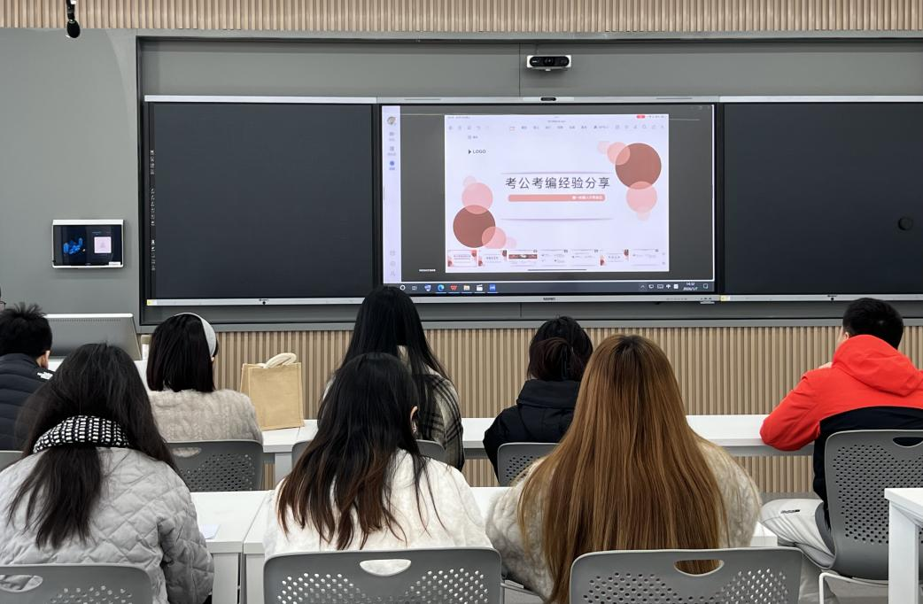 本次考公考编经验分享会紧扣学生职业规划与备考实战需求,依托主讲人跨专业、多路径的成功经验,为在场同学构建了从岗位选择、流程把控到应试技巧的系统化认知框架。活动有效破解了学生在考情认知和操作流程中的信息壁垒,增强了备考信心与行动自觉,不仅有助于引导学生科学制定学习与复习计划、持续提升就业竞争力,也为学院进一步深化就业指导服务、拓宽学生成长成才通道、推动实现高质量充分就业奠定了坚实基础。
