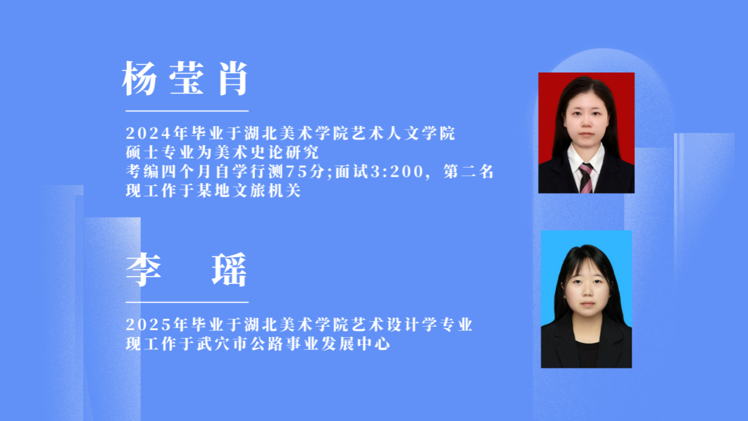 本次活动充分发挥优秀学生的示范引领和朋辈互助作用,聚焦学生职业发展关键需求,面向有志于考公考编的同学精准传递备考信息、系统解读政策形势、集中回应现实关切。活动由艺术设计学系主任张娜副教授与彭叶怡老师共同主持,特邀2024届研究生校友杨莹肖(美术史论研究方向)和2025届本科生校友李瑶(艺术设计学专业)以线上视频形式作专题分享。