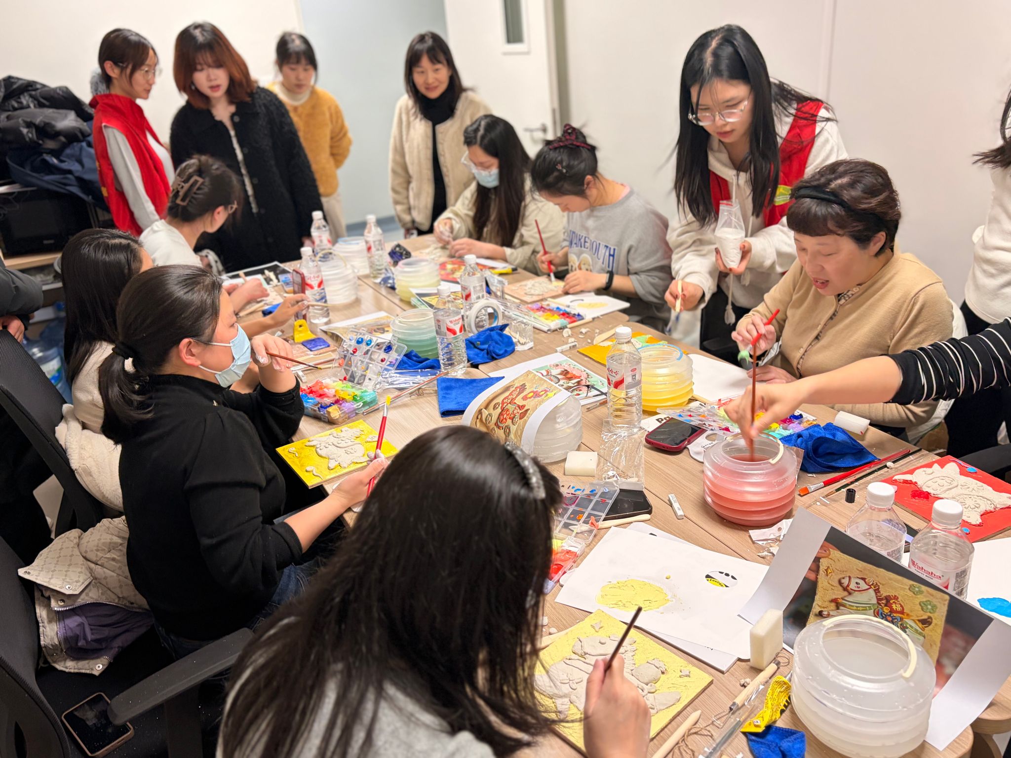 随后,师生们与现场医护人员共同开展了以马年春节为主题的艺术手工活动,立足学院专业特色,结合浮雕、马年、梅花、桔子等元素,通过艺术语言传递对马年新春的迎接、对医者责任的礼赞。学院党委副书记刘小荣表示:“我们希望以艺术为媒介,挖掘医疗场景中的温度与力量,让医护人员感受到艺术的温度与趣味,为公众呈现更具人文气息的医疗空间。”