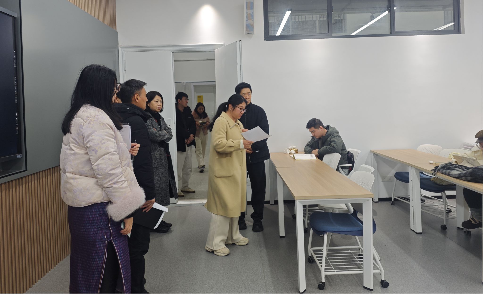 在随后进行的教学检查中,曹丹认真听取了学院工作汇报,详细了解教师到岗与学生出勤情况、新学期教学安排、课堂教学秩序与毕业生教学等重点工作,全面掌握学院开学运行态势。会后,检查组一行实地走访教学场地,细致查看课堂教学、师生互动、环境秩序等情况,现场了解教学状态,对进一步提升教学保障水平与育人成效提出具体指导。