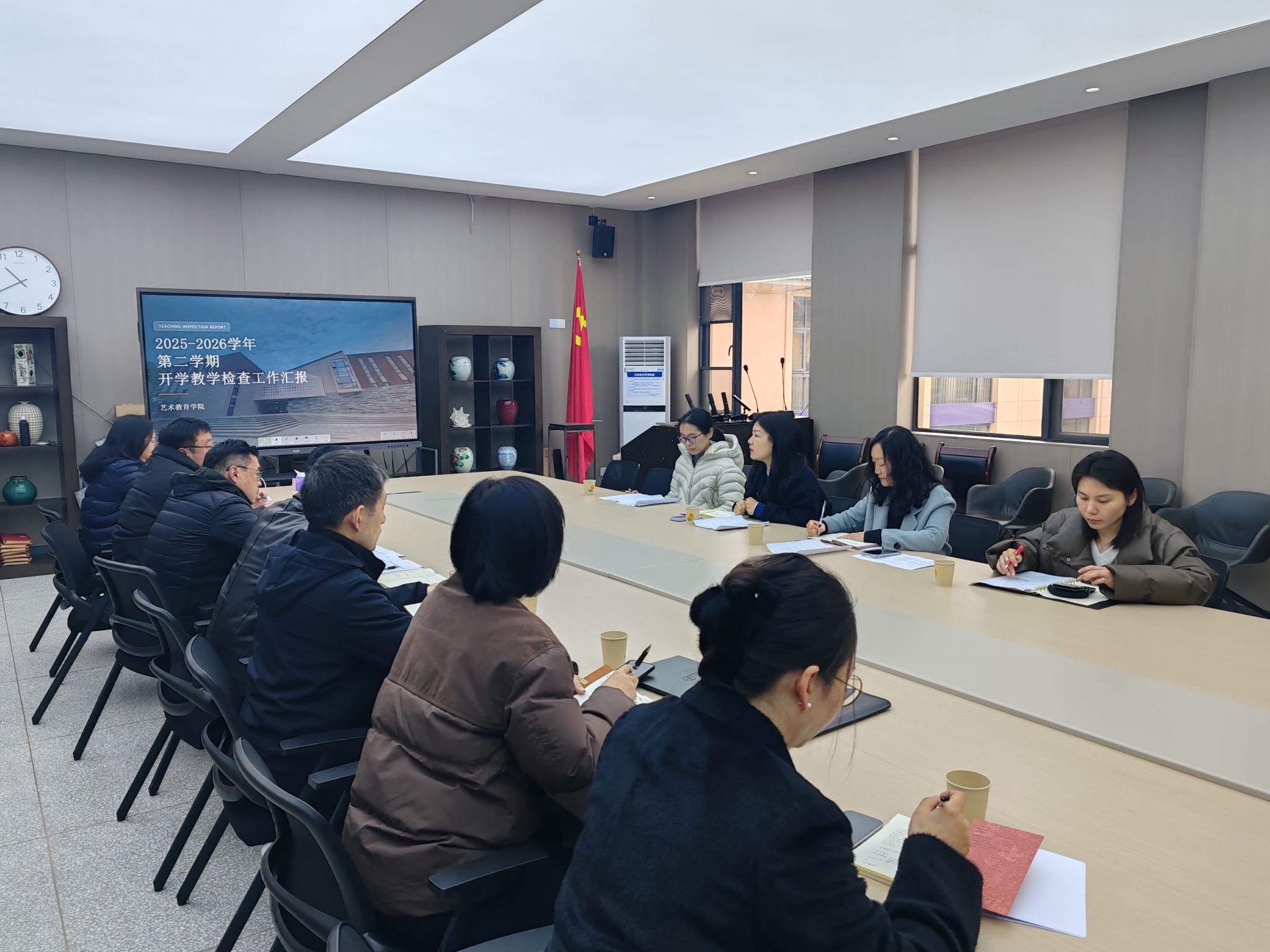 3月2日上午,党委副书记朱丽莎带队赴艺术教育学院,开展2025—2026学年第二学期开学教学检查,艺术教育学院领导班子成员,院长助理及相关工作人员参加会议。