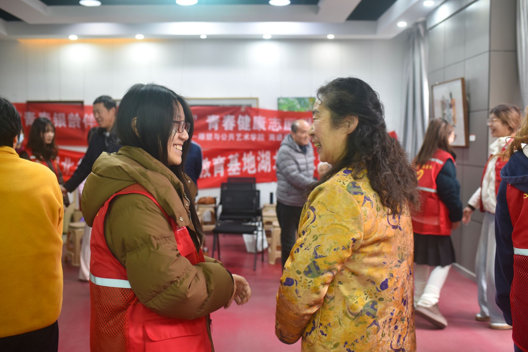 互动之后,特邀专家林建荣教授带来健康讲座,内容涵盖均衡营养、老年常见病预防和青春期健康管理,通俗实用。随后的交流环节,老少围坐畅谈,银发与青春的话语交织,格外温暖。本次活动由雕塑与公共艺术学院青春健康教育示范基地、美育青春健康同伴社团队共同策划组织实施。