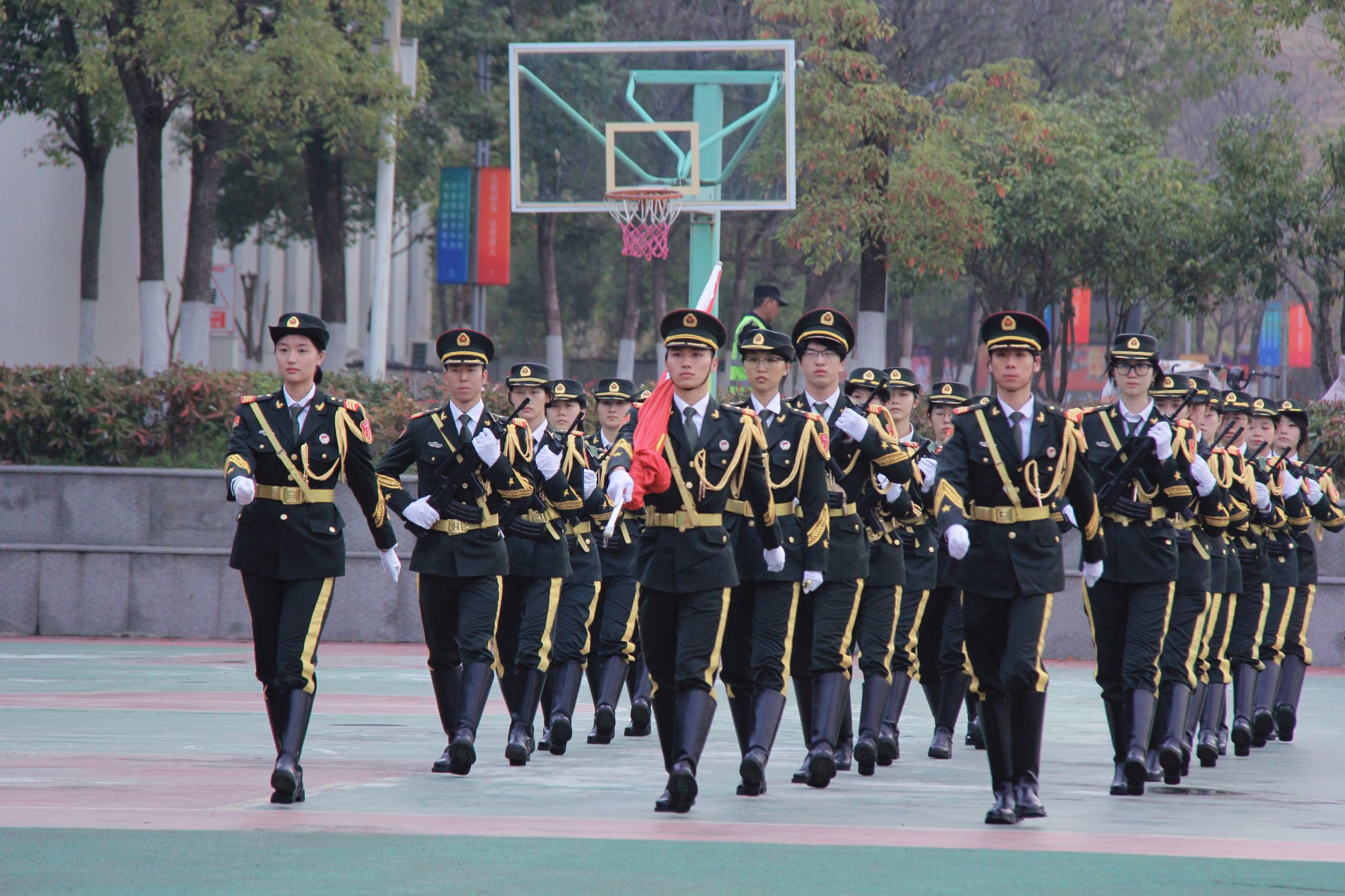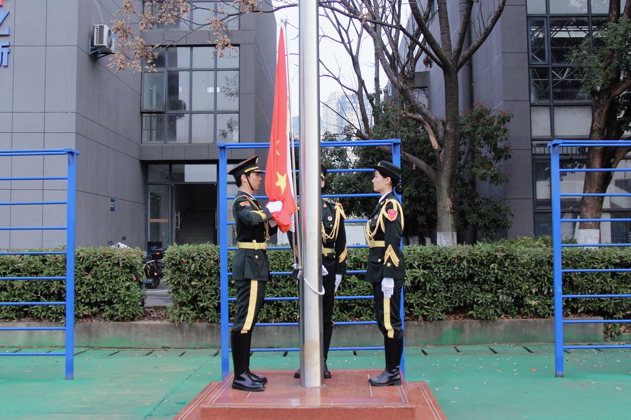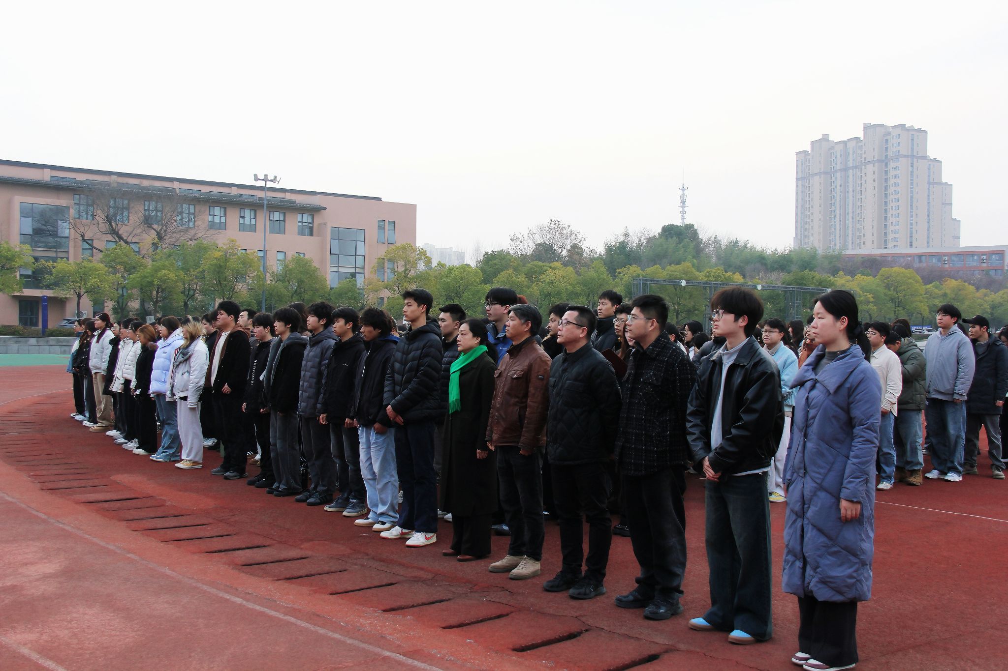 3月9日清晨,学校在田径场举行升旗仪式。中国画学院党委副书记陈捷,副院长朱国栋、熊明非及260余名师生代表参加升旗仪式。晨光之中,国旗护卫队步伐铿锵,五星红旗冉冉升起。全体师生肃立注目,高唱国歌,在庄严仪式中厚植家国情怀、凝聚奋进力量。