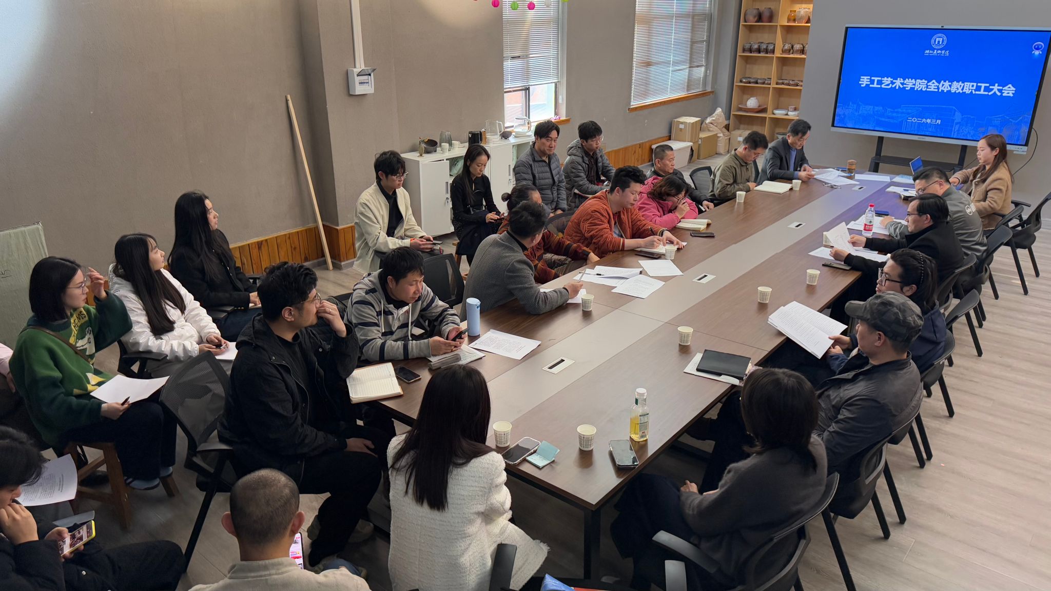 3月12日,手工艺术学院全体教职工大会在A11-407会议室召开。学院领导班子成员及全体教职工参会,会议由院长助理魏传涛主持。