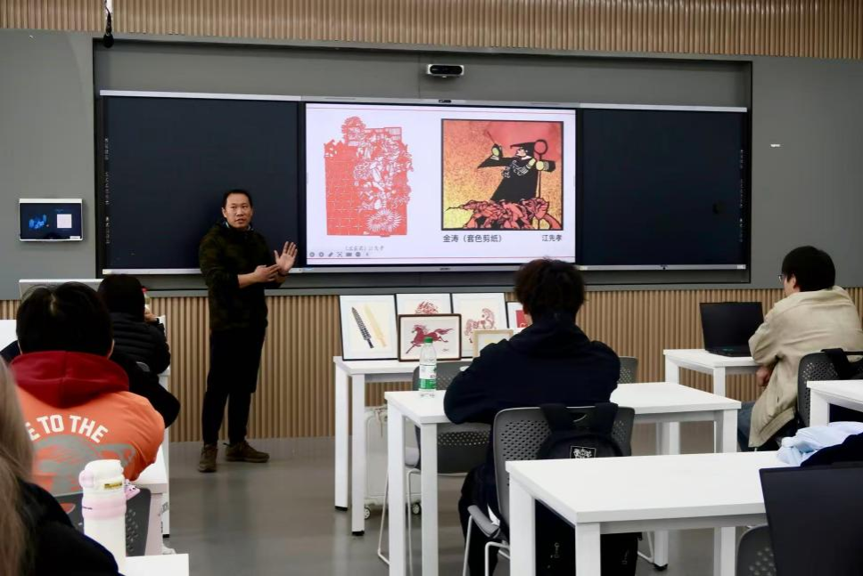 3月12日,艺术人文学院艺术设计学系特邀湖北省博物馆高级工艺美术师、武汉剪纸省级非遗代表性传承人、湖北省工艺美术大师蔡骁龙在A11-208教室举办了主题为“武汉剪纸传承发展”的讲座。