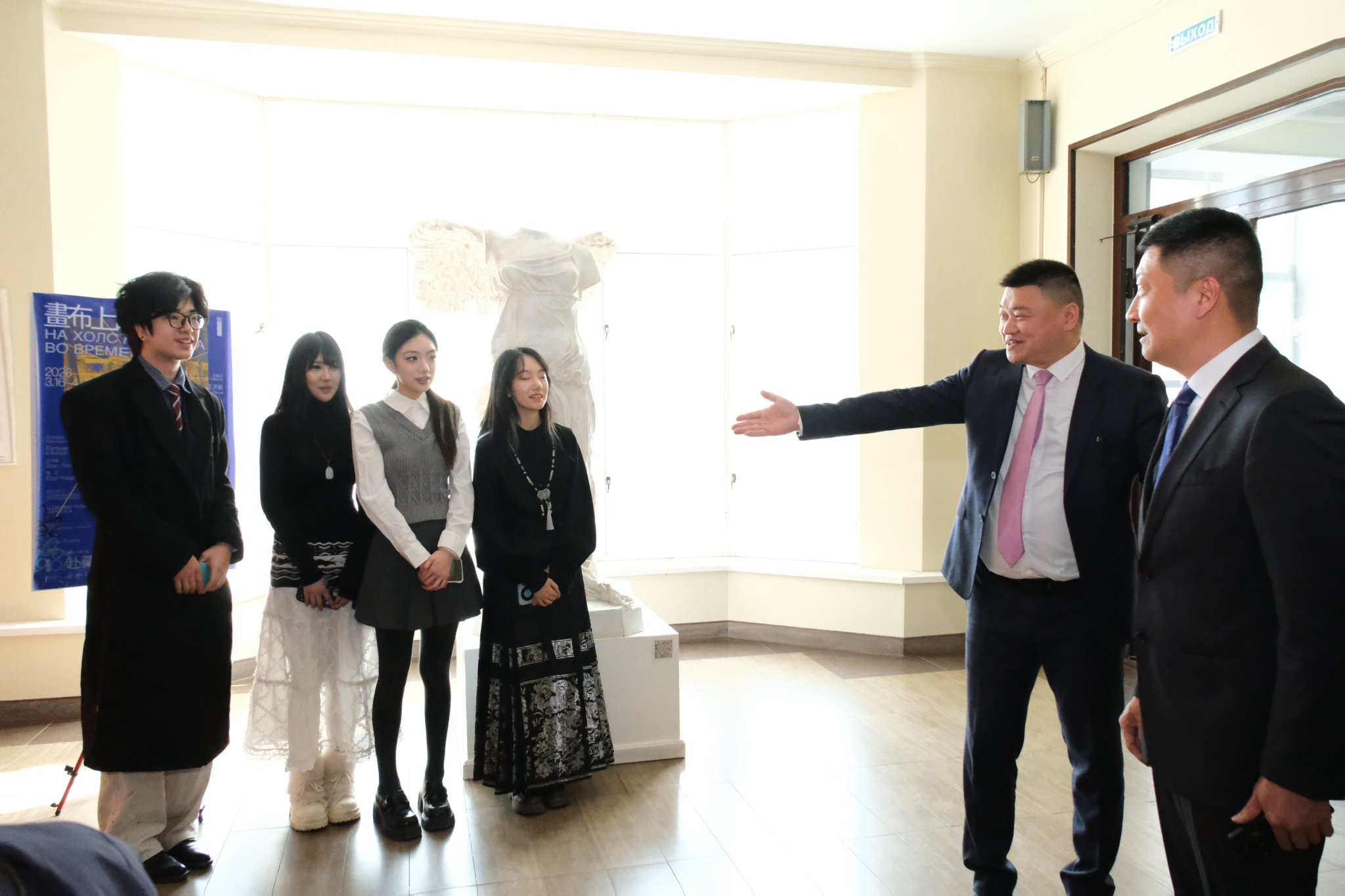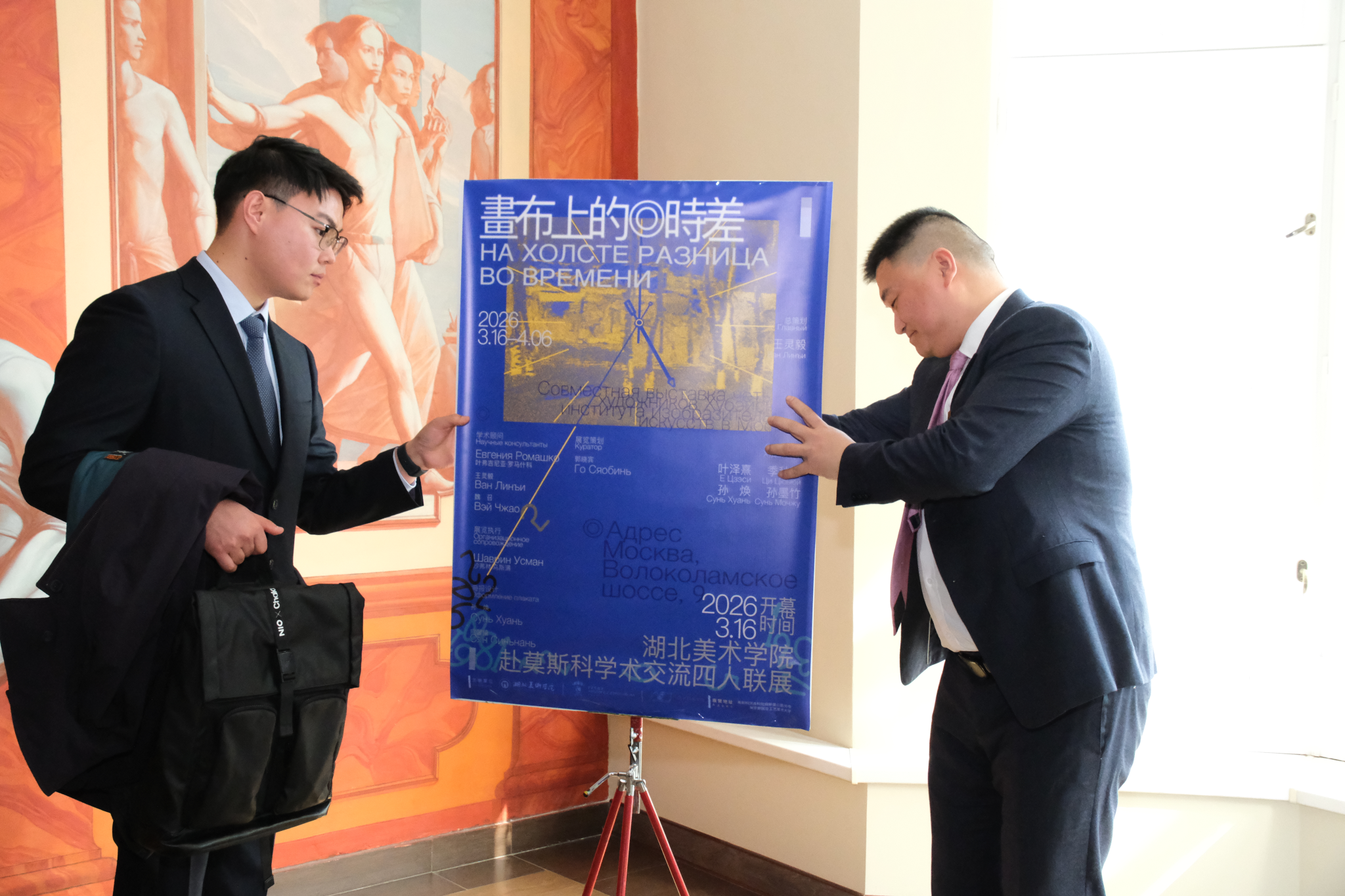 当地时间2026年3月16日上午11时,由湖北美术学院艺术教育学院与俄罗斯国立工艺美术大学联合主办的“画布上的时差——湖北美术学院赴莫斯科学术交流四人联展”,在俄罗斯国立工艺美术大学展厅正式开幕。此次展览是中俄高校艺术教育合作的重要成果,也是青年艺术人才跨国交流、跨界创作的生动实践,展览期间中国人民大学党委书记张东刚率代表团到访。