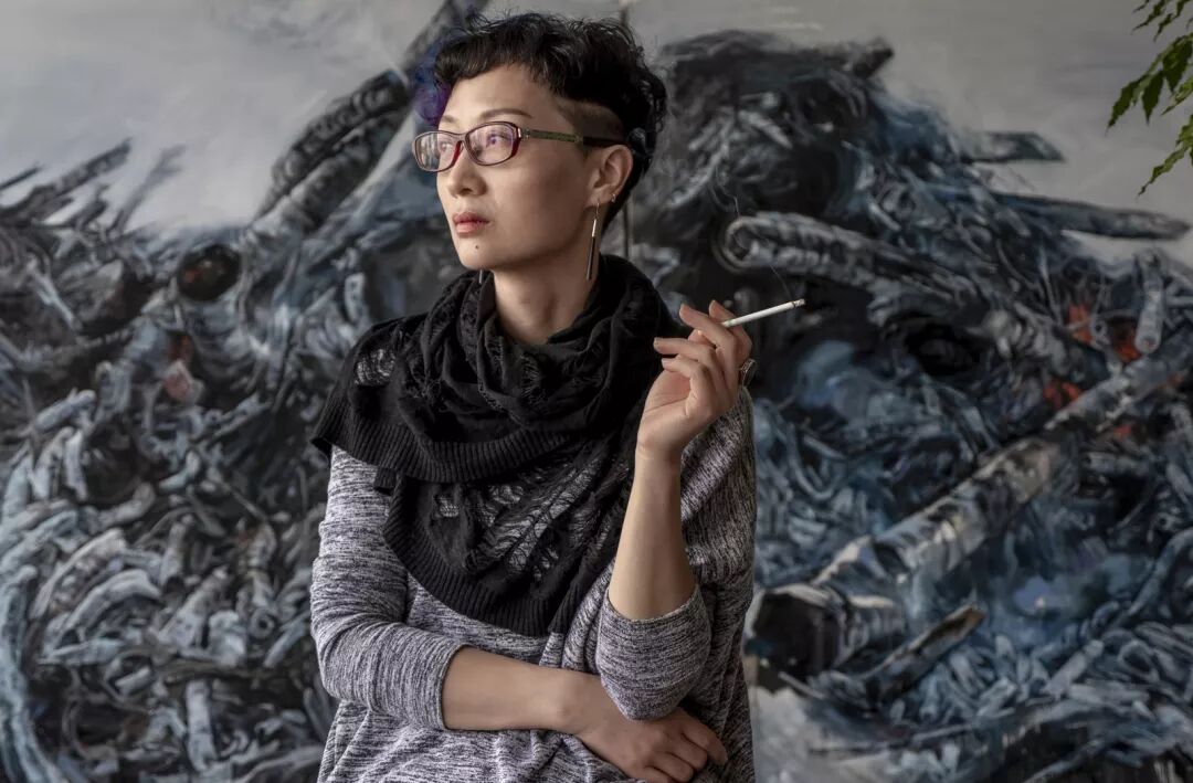 黄海蓉《逝者如斯》160X360cm 两联布面油画 2018年