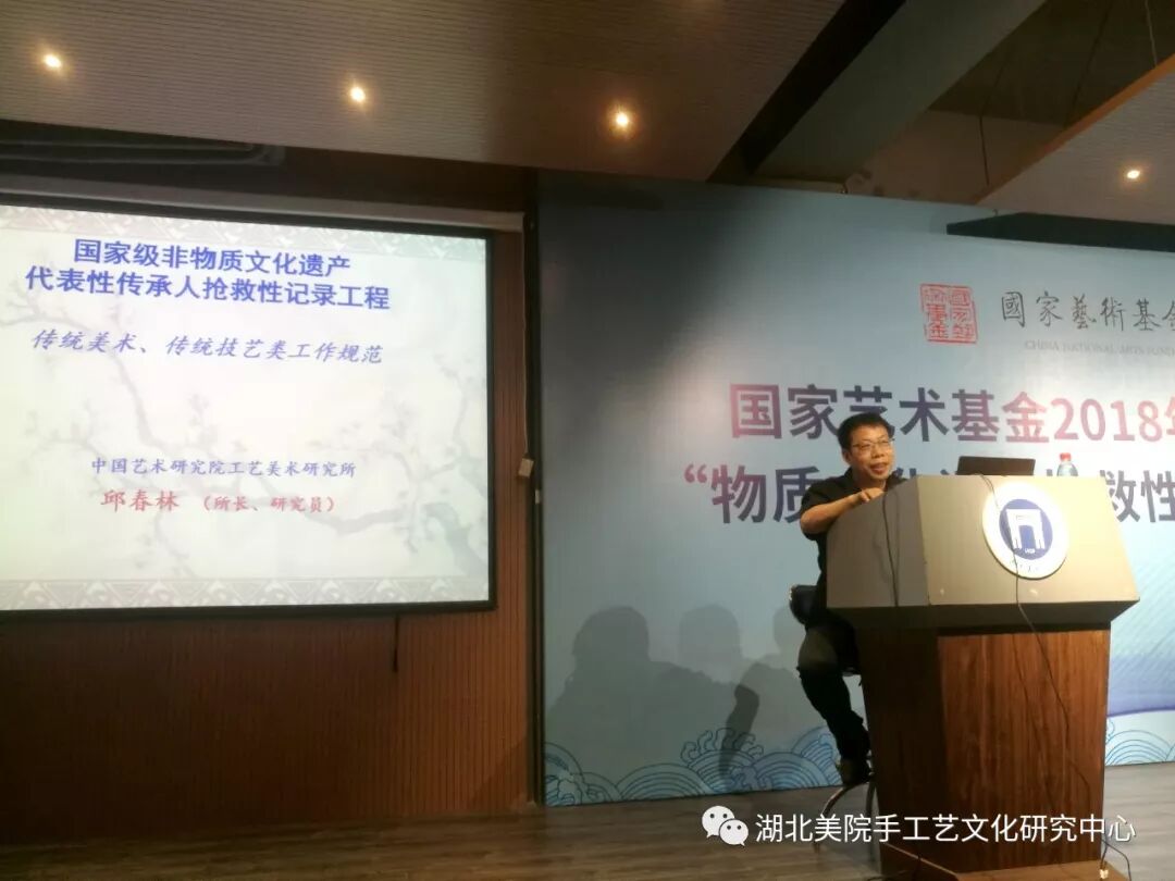 8月10日上午,受湖北美术学院邀请,我国著名传统工艺研究学者、中国艺术研究院工艺美术研究所所长邱春林研究员,为国家艺术基金2018年度人才培养资助项目“物质文化遗产抢救性数字保护人才培养”全体学员授课。