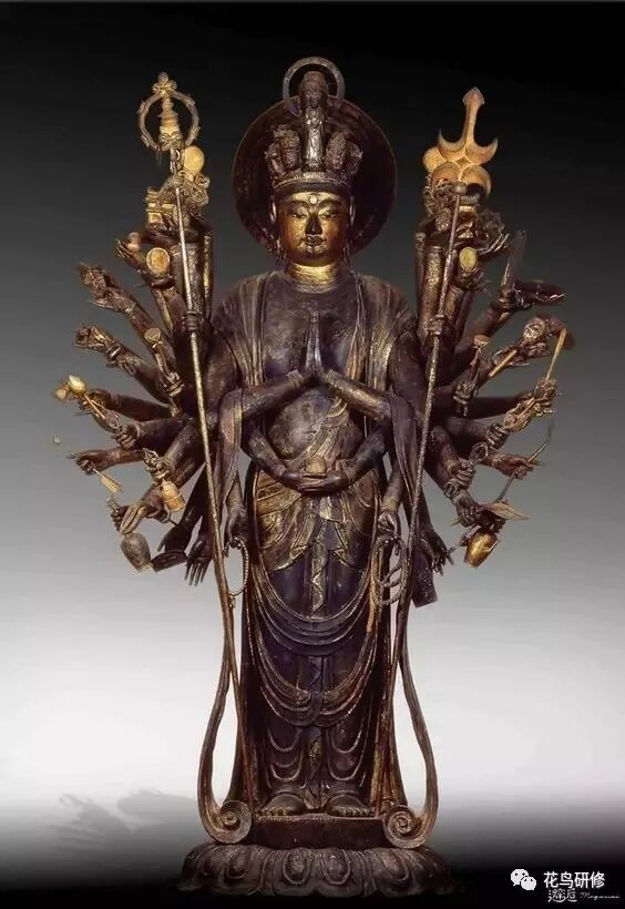 除了上面所说的对称外,传统雕塑造像中还有两种对称平衡的样式。第一类是“量对称”。这“量”是指体量,重量,份量之意。这种对称暗含在雕塑不同的造型样式中,犹如秤杆两端的荷物,虽性质不同但份量一致。体积的处理犹如菩萨造像里秀发璎珞、衣纹裙摆,法器宝物本是对称之物,因为动态折叠多姿分布于双肩两侧或体形中央,虽形体呈现样式不同,恰好是酝酿平衡中的生动,因而不会给人造成不适之感,更添喜悦之情。