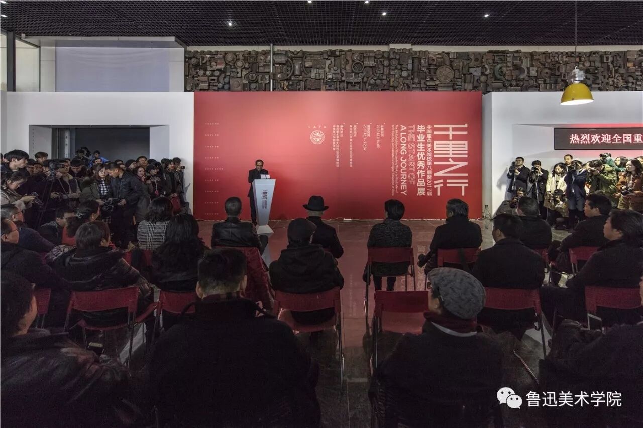 12月3日下午14时,由中央美术学院、鲁迅美术学院、广州美术学院、湖北美术学院、清华大学美术学院、四川美术学院、天津美术学院、西安美术学院、中国美术学院(按字母排序)九所美术院校联合主办,鲁迅美术学院承办的“千里之行——中国重点美术院校第八届暨2017届毕业生优秀作品展”在鲁迅美术学院大连校区艺术博物馆隆重开幕。