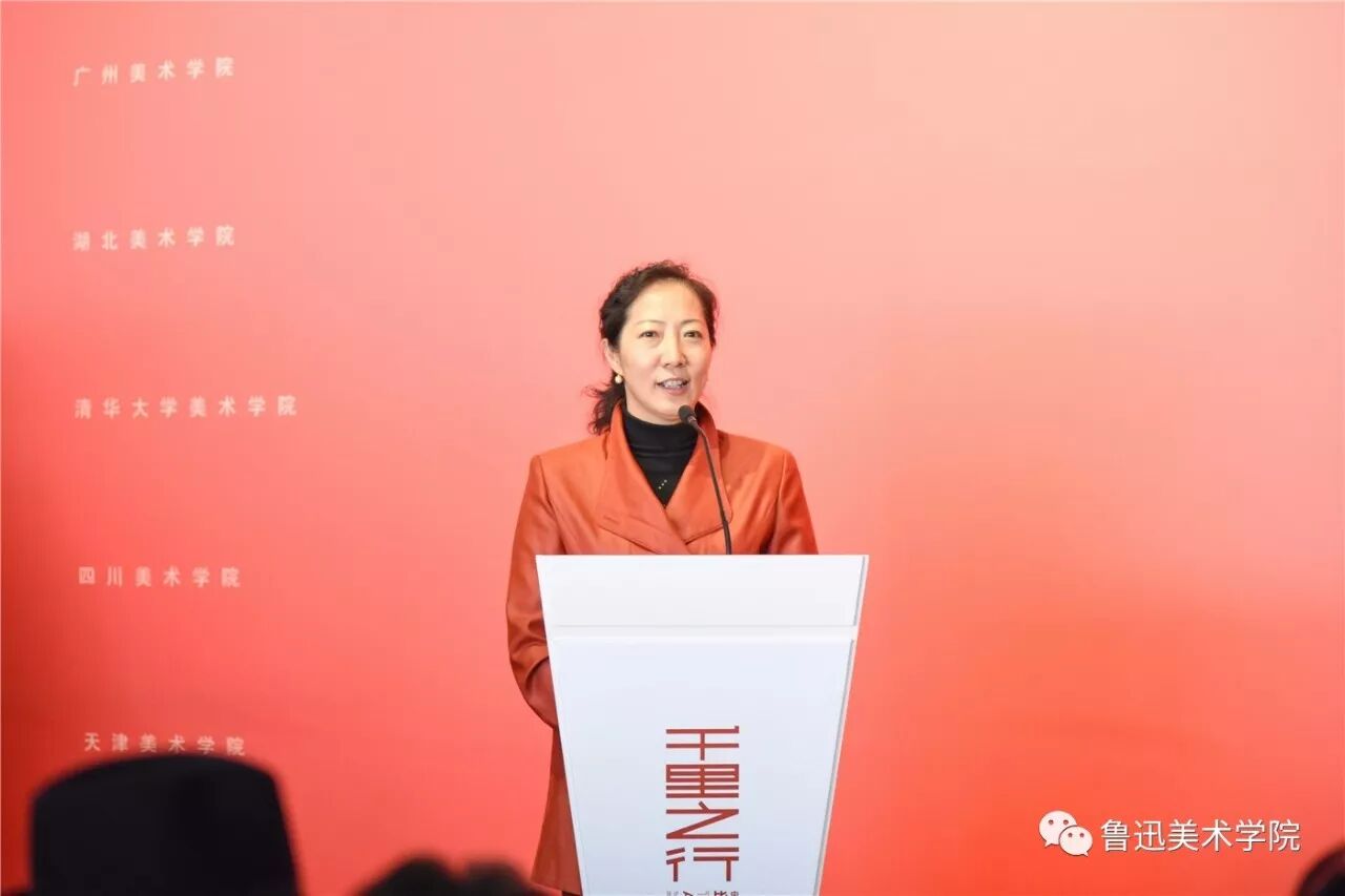 作为千里之行的发起单位代表,中央美术学院院长助理、教务处处长王晓琳女士在开幕式上致辞。她表示,千里之行展览经过九大美院的共同努力,经过八年的不断积累、发扬、传播,现已经成为国内高等艺术教育的平台活动及高水平的学术活动。展览搭建了九大美院高校教育教学的交流平台,促进了各高等艺术院校在全国层面上对教学定位、教学理念、人才培养规格等方面相互交流、借鉴和促进。千里之行是一个具有学术性、推介性和延展性的展览,学生可以以一个准艺术家的态度面向社会,“千里之行”寓意“始于足下”,展览是母校给予毕业生的一份厚重的寄托。到明年中央美术学院承办此展览,将完成第一个轮回,未来千里之行将要面向世界。