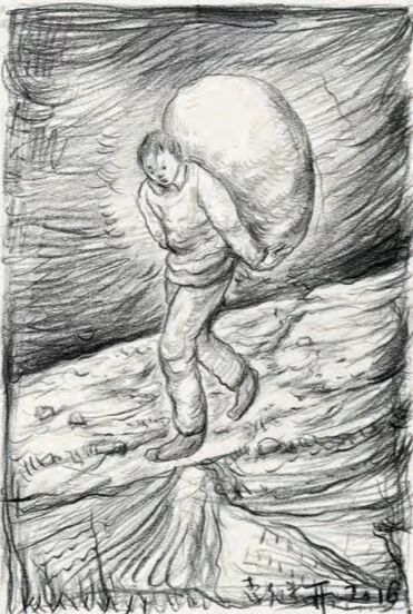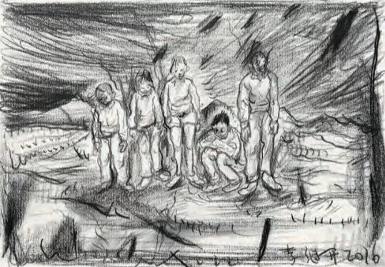 方志凌:谈谈《安慰》、《麦穗人群》吧,跟前一阶段的大幅素描相比比,明显老辣了很多。显然在抑制语言才华,更直接地展示精神体验,这是否意味着你素描创作的一个新阶段?还是一种新的语言实验?