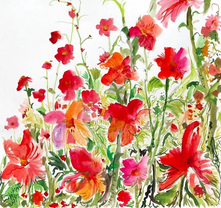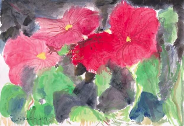 方志凌:你最近画的这批小幅水彩花卉特别有感染力。无论是怒放的形态、明艳清澈的色彩、还是那种尽情舒张又不掩焦灼的情感特征,都与流行趣味颇不相同。这是出于本能还是深思熟虑之作?