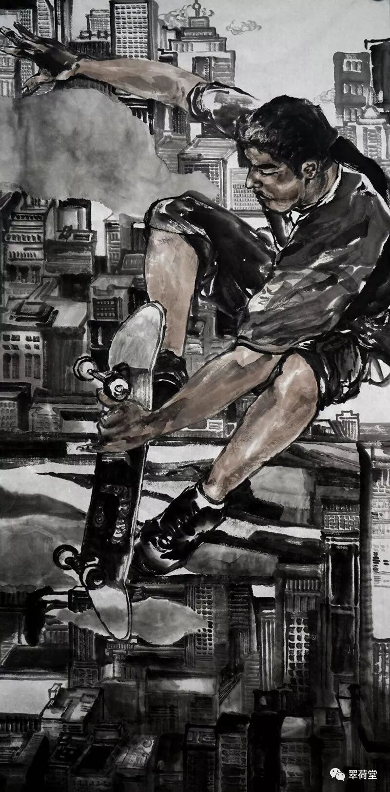 商妍《城市飞跃 》 68X135cm 纸本水墨2017年