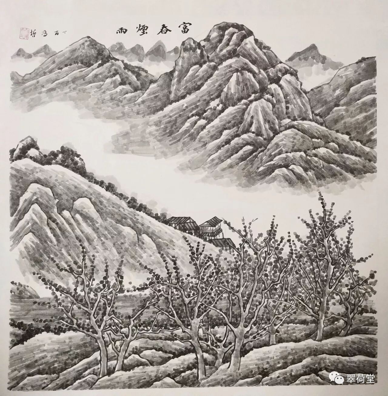 冯哲 纸本水墨 作品名称:《富春烟雨图》 68*68cm
