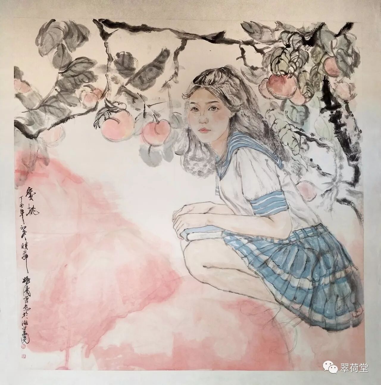 周婉清 纸本水墨 《蜜桃》 2017年68x68cm