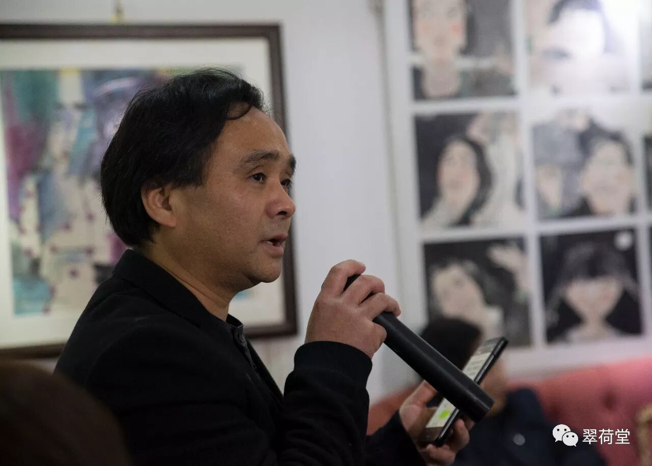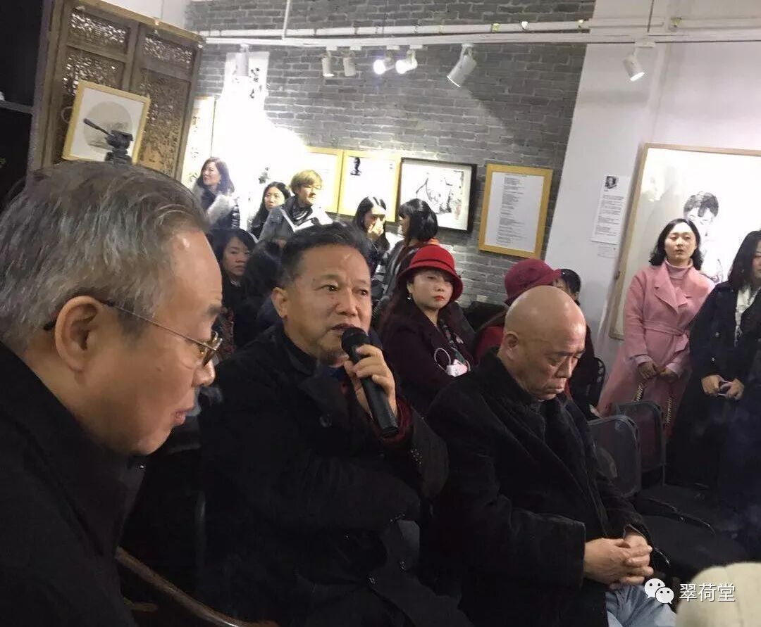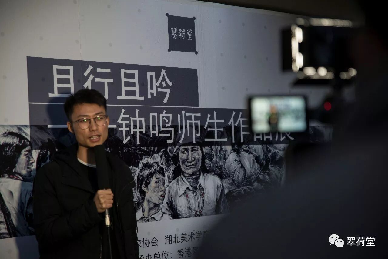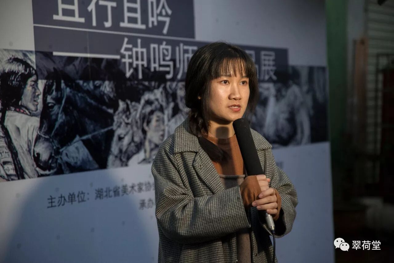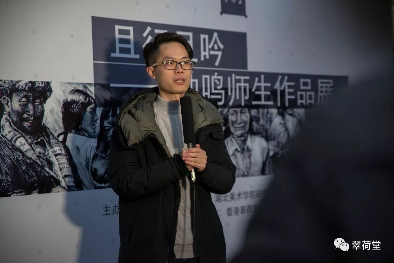 湖北大学教授谭崇正在开幕上表示:现场来了很多高人,很多人物画专家,他感觉钟鸣教授的画走得很高远,无形之中对他的学生启发很大。从学生的作品来看,有很强的时代气息,扎实的基本功,独特的面貌。一叶知秋,这反映出湖美的艺术很多元,教学很开放,因此有如此丰硕的研究成果。最后他对翠荷堂堂主何敏表示由衷的感谢,感谢她为湖美的学子提供一个好的平台,使得年轻有为的艺术家得到更多的关注。