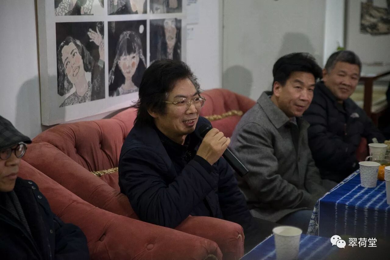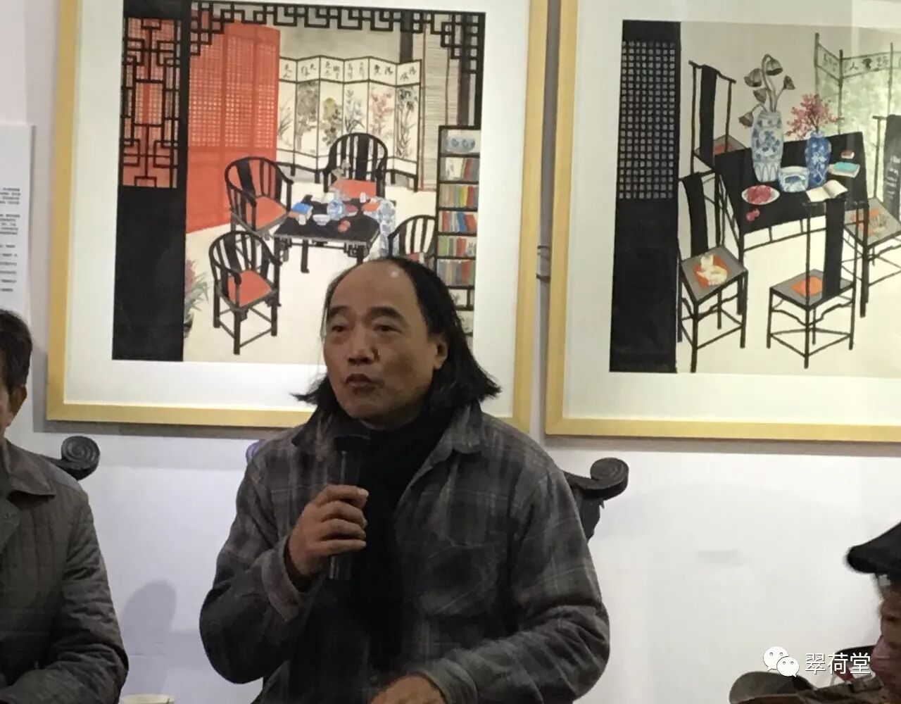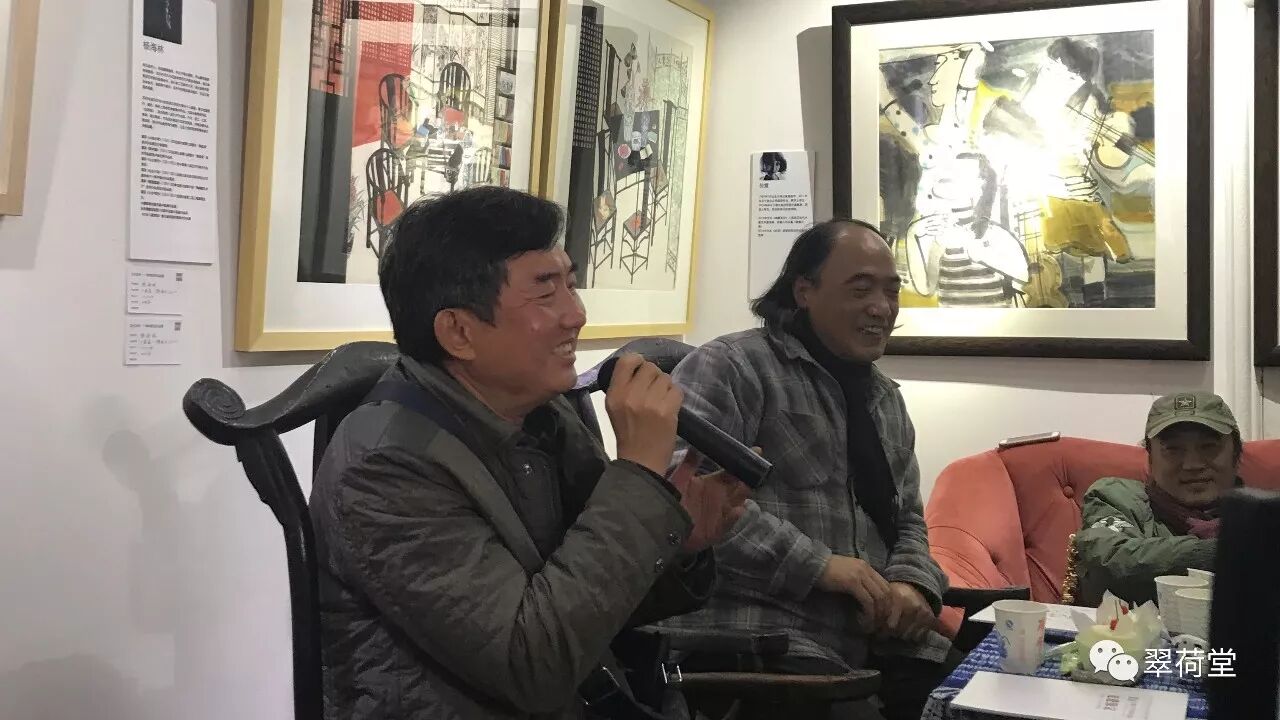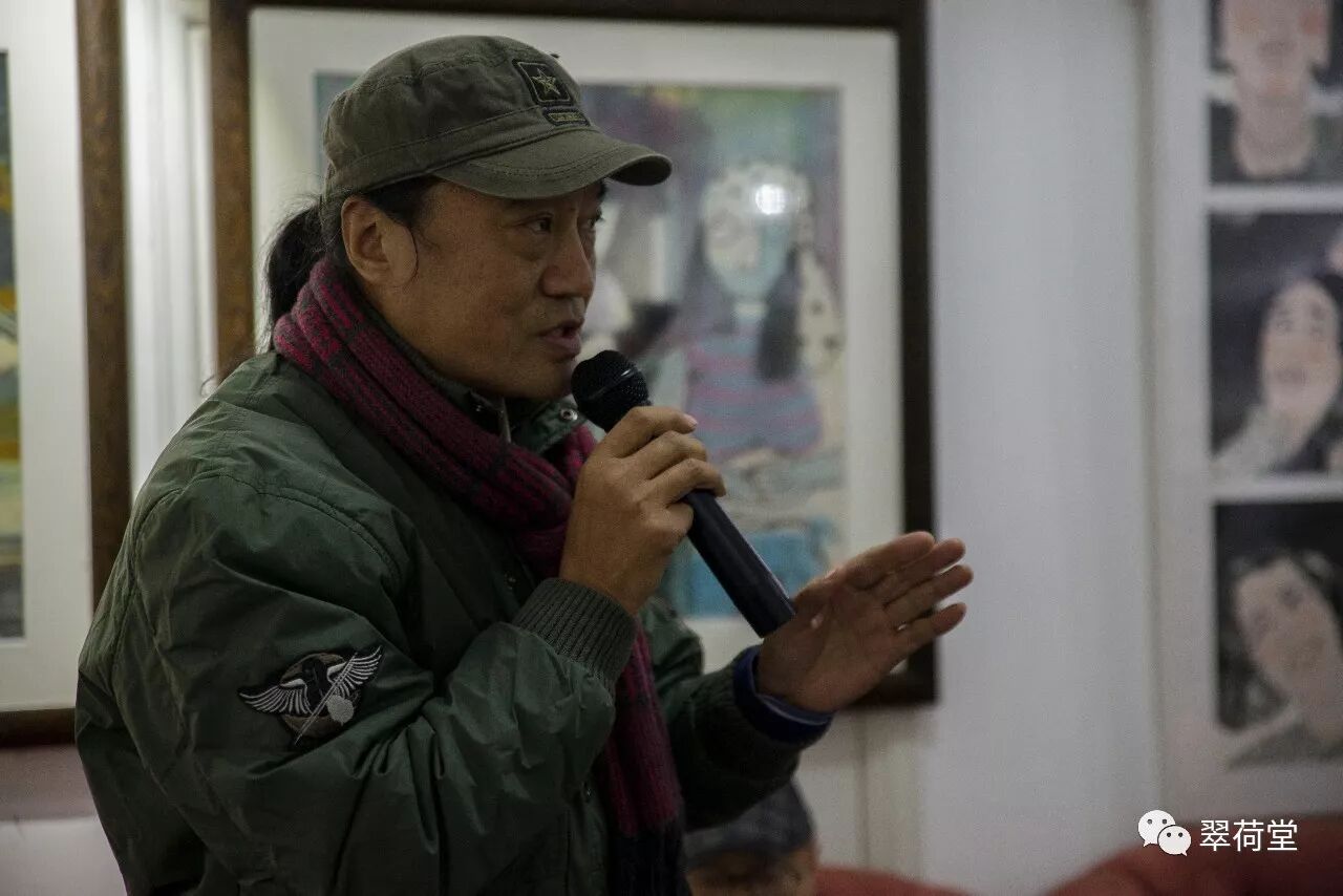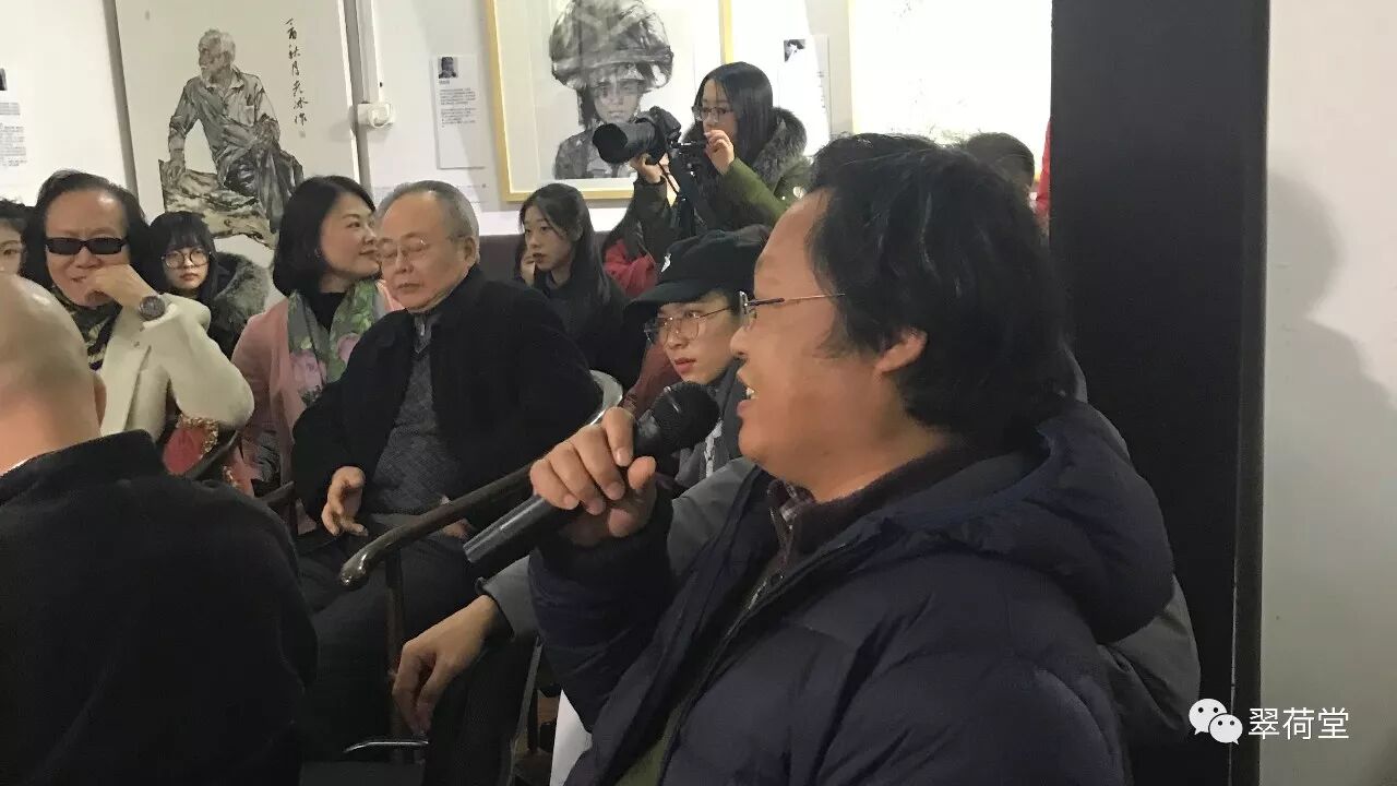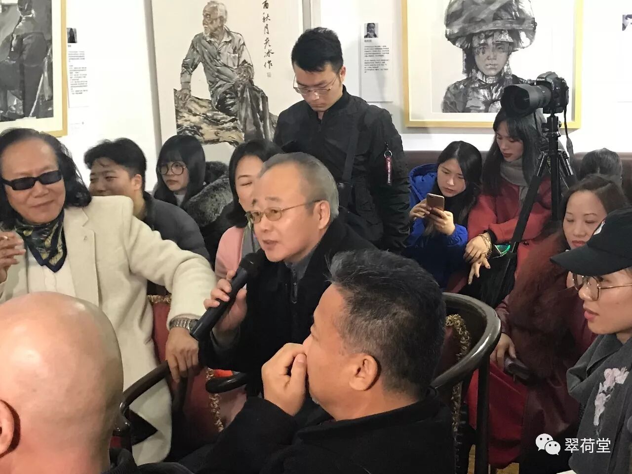 湖北大学教授谭崇正在开幕上表示:现场来了很多高人,很多人物画专家,他感觉钟鸣教授的画走得很高远,无形之中对他的学生启发很大。从学生的作品来看,有很强的时代气息,扎实的基本功,独特的面貌。一叶知秋,这反映出湖美的艺术很多元,教学很开放,因此有如此丰硕的研究成果。最后他对翠荷堂堂主何敏表示由衷的感谢,感谢她为湖美的学子提供一个好的平台,使得年轻有为的艺术家得到更多的关注。