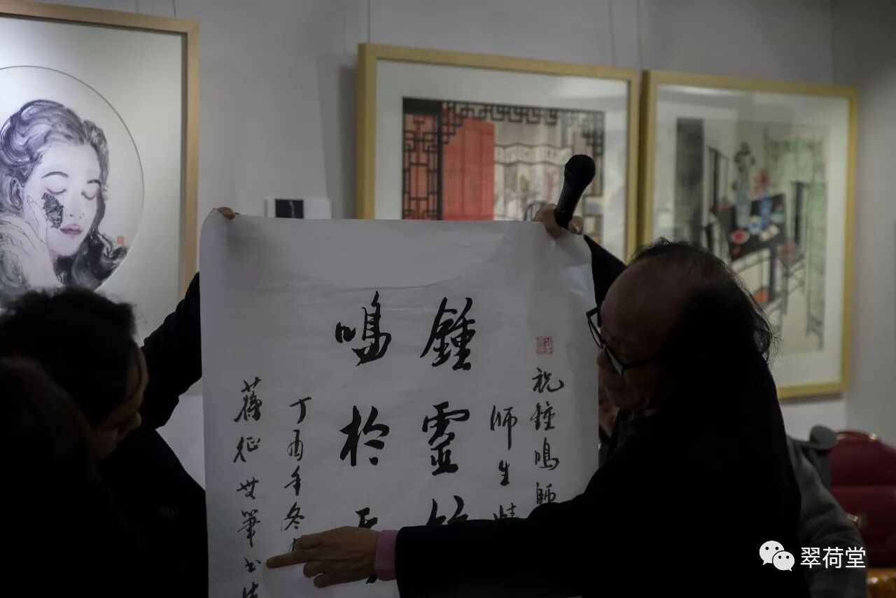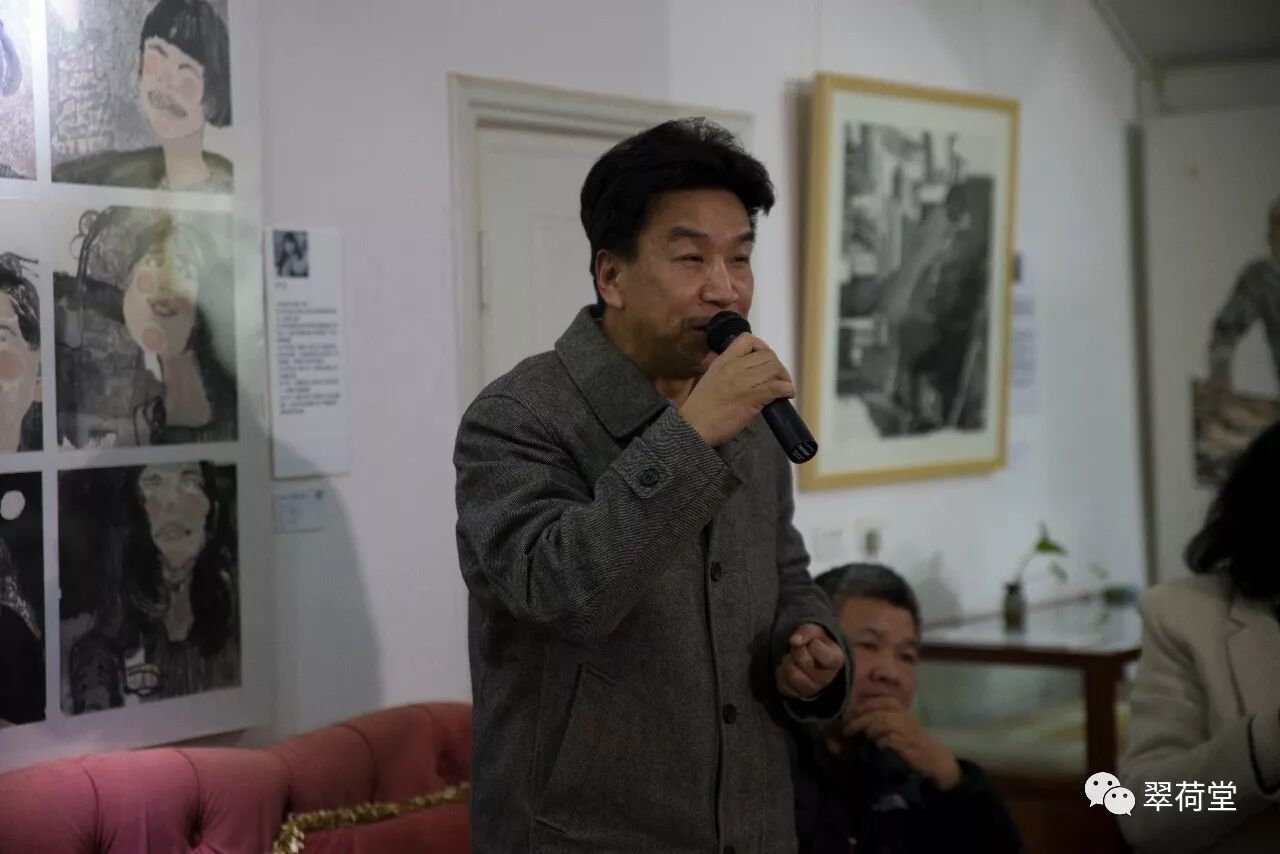 银小宾教授在开幕上致辞:感谢学校的鼎力支持,以后这种类型的展会越做越好。这个展依托学校的力量 ,又依托公益社会的力量,又得到大师的支持,又得到翠荷堂艺术中心这种公共艺术空间的支持,又有同学和老师的支持 ,这个画展一定会成功!