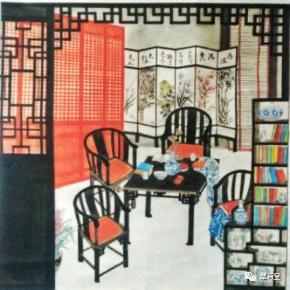 杨海林 纸本设色 《居家一隅》(70x70cm)系列之一