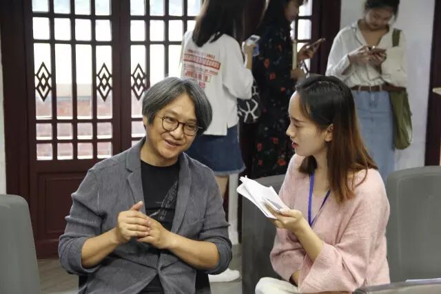 两位艺术家的展览,下午我和肖院长一起去看了一下,体现出两种文化的各自体现,怎么样去找到对话的契合点,我就开始从他们的艺术经历中找到一点话题。