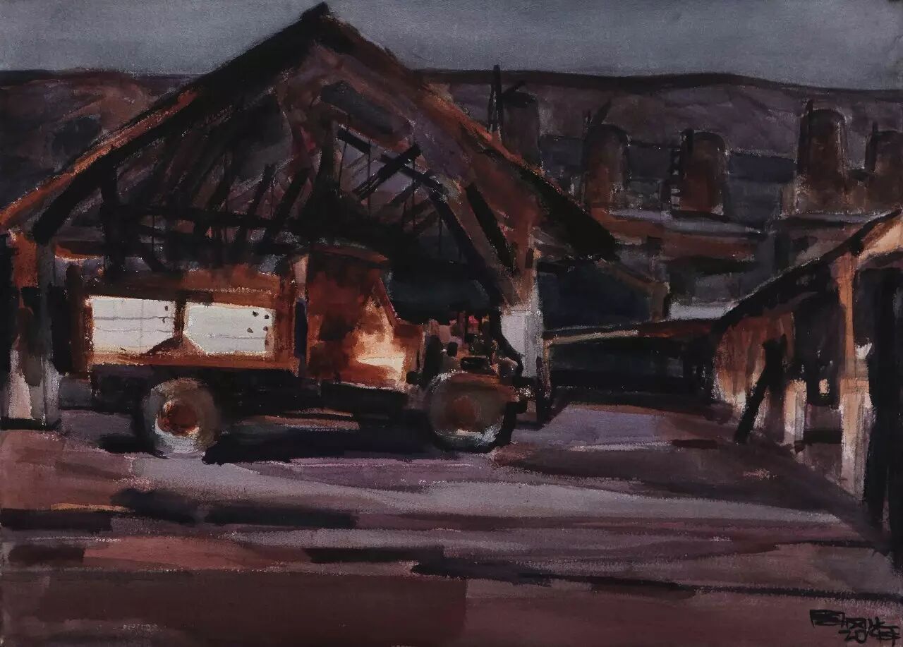 浙江艺术家周刚教授就是一位勤于思考、有着强烈使命感的艺术家,他很注重对人文学科的研究,长期关注普通人的命运和生存状况,十余年坚持每年深入到矿山体验生活,致力于为普通劳动者造像立传。他笔下的矿工,或深沉苦涩、或坚韧乐观,作品充满人文关怀。在表现手法上,他大量使用水彩画中比较忌讳的黑色,这既是煤矿的基本色,也反映画家对底层民众生存状态的思考。但是他的黑色,并不是简单的压抑与沉闷,能让观众透过那黑色画面露出的矿工们一双双复杂的眼睛,进入更深层次的人性思考。而他这次带来的作品,没有他非常擅长的人物,而是表现人物生存的环境,有矿区、风景、佛寺,这些风景,看起来相互没有关联,倒令人想起他曾经对人性、诗性、禅性、佛性、鬼性的言说,让我们超越画面,进入诗与思的层面。