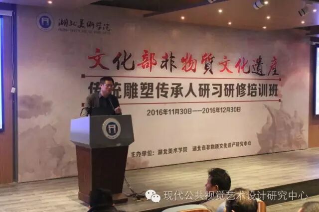 2016年12月1日冬日晨光熹微中,第二届湖北省“非遗”传统雕塑的传承人们迎来了在湖北美术学院学习的第一天,湖北美术学院邀请到彭富春教授为学员们带来首课。彭富春教授毕业于武汉大学中文系,后留学德国奥斯纳布吕克大学,获哲学博士学位,回国后任武汉大学哲学系教授。