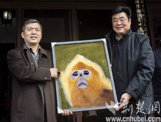 油画作者梁相斌先生介绍说,金丝猴是中国特有的珍稀灵长类动物,是湖北的“名片”,也是中国的“国宝”,近年来,湖北神农架国家级自然保护区金丝猴数量比1990年时翻了一番,表明我们国家的生态环境在不断好转,这幅油画作品《爱·金猴母子》与园林博览会的主题高度契合,与绿色生态发展理念和湖北首届园博会主旨高度契合,为湖北省首届园林博览会创作这幅作品,就是希望藉由油画艺术再现珍稀物种金丝猴的生存和繁衍,唤醒全社会对生态环境的关注,对绿色发展的重视。
