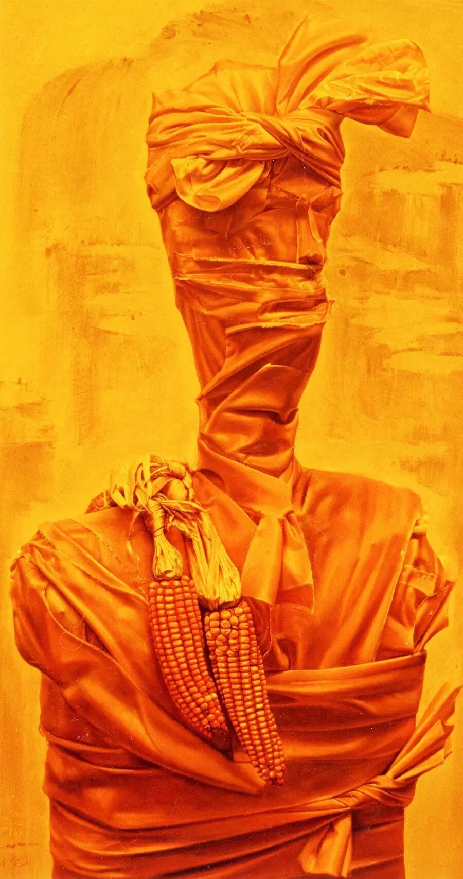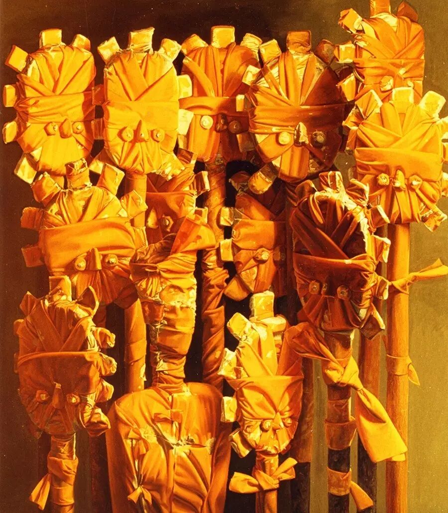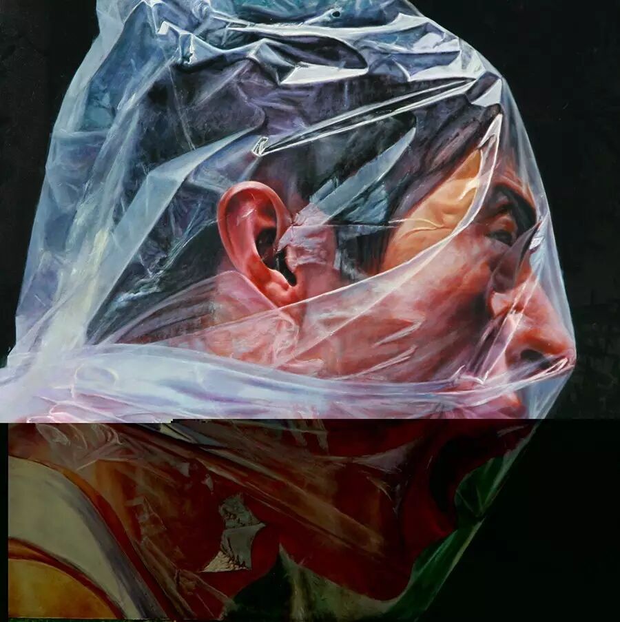 刘剑的包裹系列和塑料袋系列表面平整,体验出细微感受真实,画幅巨大又精致入微。形、色、肌理效果完全是画出来而不是做出来的,具有超过照相技术的表现力,可谓超写实。这在写实技法上是一种成功的创造。