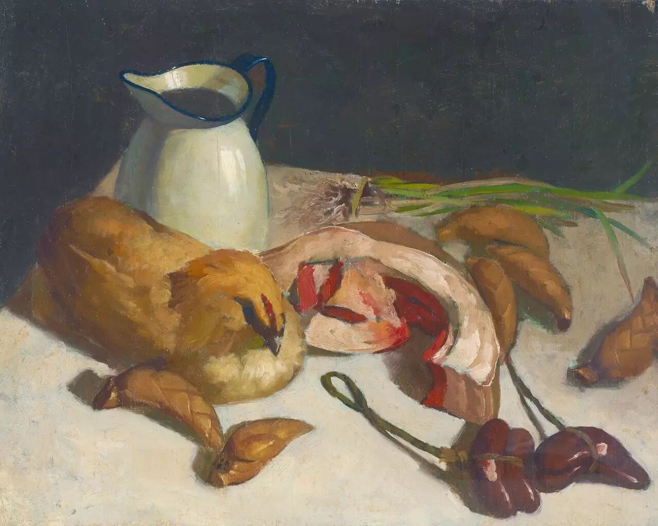 杨立光 有鸡的静物 1940年代 布面 油画 60×74cm 估价:RMB 350,000-450,000 发表: 《杨立光画集》,P84-85,湖北美术出版社,2010年8月出版。 来源:直接得自艺术家家属。