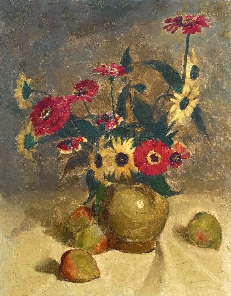 杨立光 菊花和桃 1940年代 布面 油画 45×34.5cm 估价:RMB 250,000-350,000 发表: 《杨立光画集》,P225,湖北美术出版社,2010年8月出版。 来源:直接得自艺术家家属。